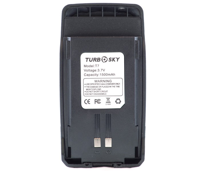 Литий-ионный (Li-ion) аккумулятор TurboSky T7 имеет ёмкость 1500 мАч, что обеспечивает длительное время автономной работы радиостанции. Аккумулятор TurboSky T7 подходит для радиостанции TurboSky T7.