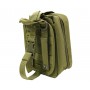 Аптечка среднего размера для размещения медикаментов и перевязочного материала для оказания первой помощи в полевых условиях. Подсумок с медикаментами при помощи липучки велкро крепится на платформе и страхуется хлястиком. Если отстегнуть хлястик, то резко потянув за ручку, подсумок можно сорвать с платформы и либо передать партнеру, либо начать использовать самому.