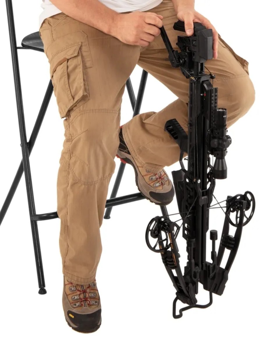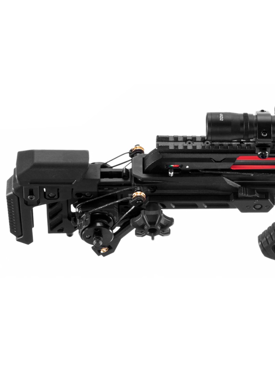 Удобство использования обеспечивается встроенной механической лебедкой, которая особенно полезна при стрельбе в ограниченном пространстве. Её рычаг можно закрепить с любой стороны арбалета или снять при необходимости.