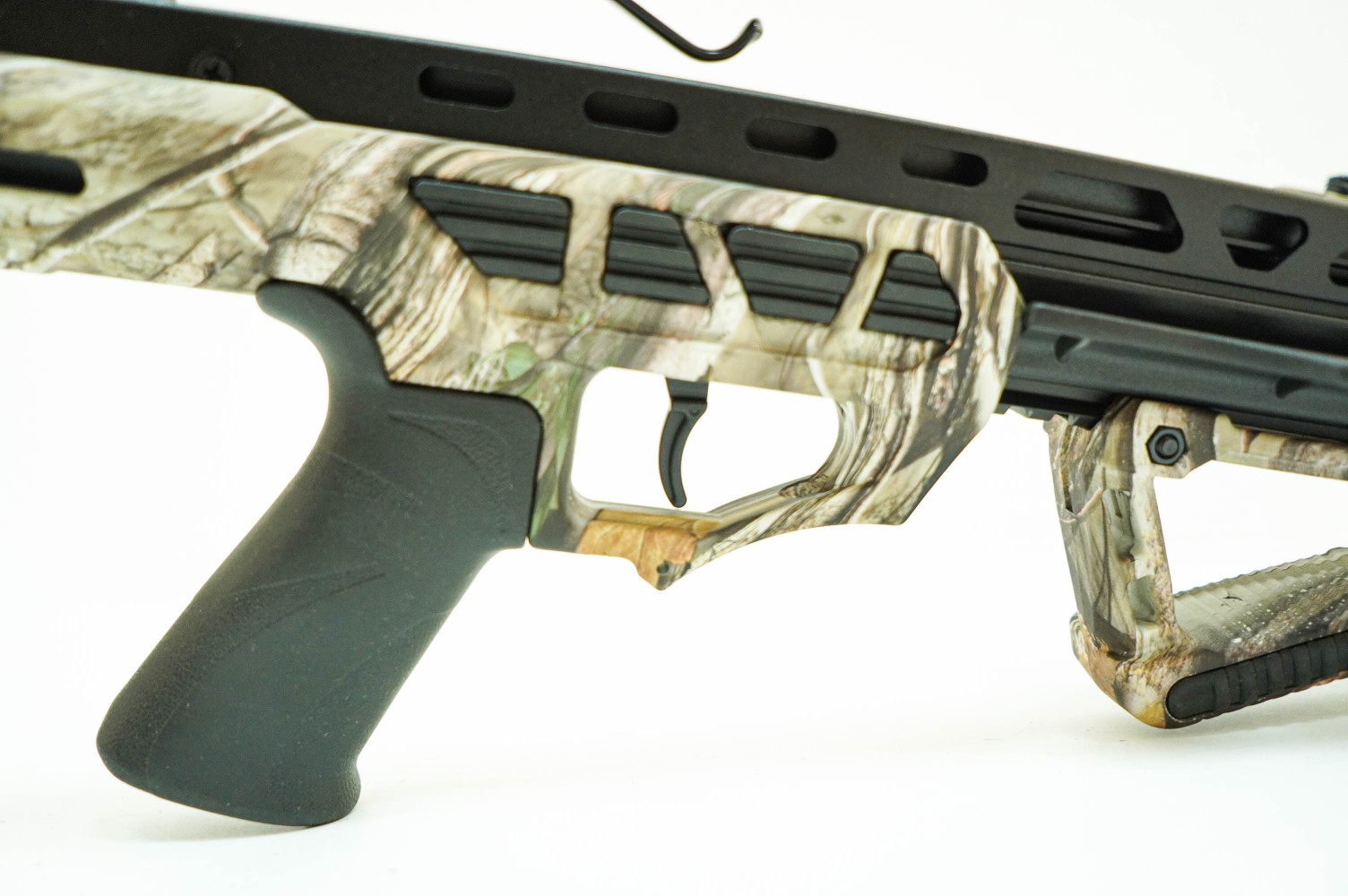 За счет широкого нижнего цевья и большого отверстия арбалет удобен при транспортировке. Наличие направляющей Вивер-Пикатинни позволяет установить на модель дополнительное оборудование. Благодаря более широкому и удлиненному защитном грипу арбалет получил брутальный внешний вид, также обеспечивается максимальная защищенность пальцев стрелка.