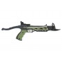Корпус этой модели изготовлен из прочного пластика, для плеч использован фибергласс, а тетива выполнена из синтетической нити дайкон. Две планки Вивера повышают возможности стрелка. Целик арбалета может регулироваться по вертикали и горизонтали. Вес модели всего 0,9 кг. Цвет – зеленый. В комплекте: три стрелы из алюминия и набор для сборки.