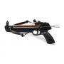 Yarrow Model E - легкий, по своей стоимости достаточно-таки доступный вид пистолетного арбалета. Изготавливают такие орудия из легкосплавных материалов, имеющих в собственном составе нить карбоновую, что, естественно, повышенную прочность им обеспечивает. Имеет плечи, точно напоминающие аналогичную деталь лука классического, которые монтированы прямо на пластиковый корпус. Длина образца - 32 см, тогда как плече здесь шириной в 42 см. Имеет напряжение в 36 кг. В комплекте к данному виду оружия применять можно болты на 16,5 см (они же - 6,5 дюймов).