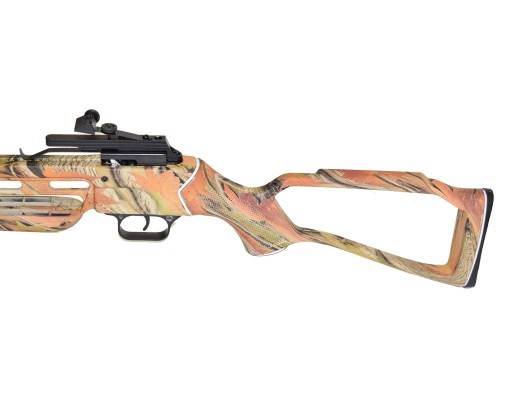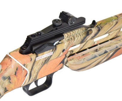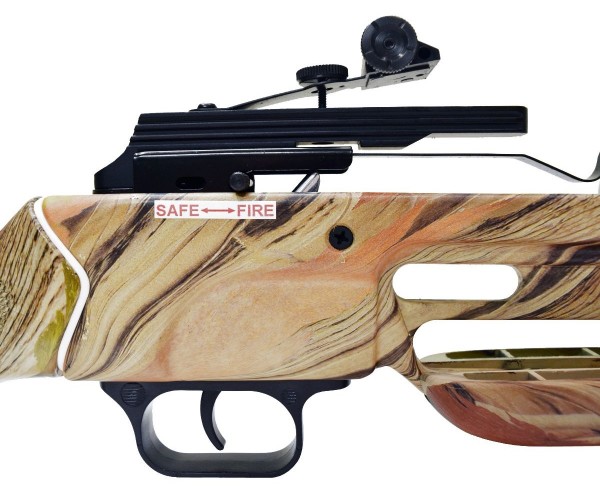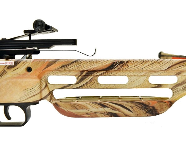 Также к длине добавляется размер стремени, предназначение которого - это облегчить натяжение тетивы. Тетива сделана из высокомолекулярного волокна с длительным сроком службы, благодаря своей износостойкости. Ее рабочий ход равен 25 см. Технические данные так называемого боеприпаса представляют из себя следующие: у стрелы начальная скорость - 64 м/с при том, что сила натяжения всего до 43 кг, с которой справится и женщина, и подросток. Рекомендуемые стрелы должны быть из сплава алюминия и обладать длиной в 16 дюймов с d-м - 9 мм. Прибор дополнительно снабжен автоматическим предохранителем, обеспечивающим безопасность при эксплуатации, благодаря блокировке спускового крючка при каждом взведении арбалета. Соответственно изделие доступно и безопасно и детям.