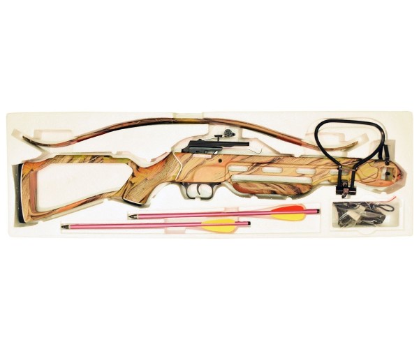 Комплектация (?): | корпус арбалета, плечи, 2 алюминиевые стрелы 16", тетива, открытый регулируемый (диоптрический 2x) прицел, ключ для сборки |