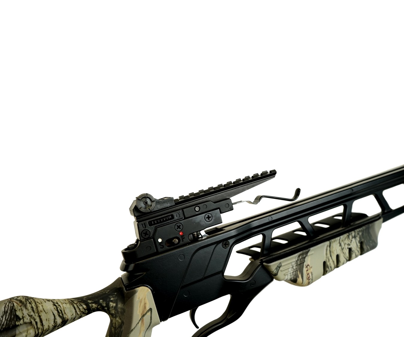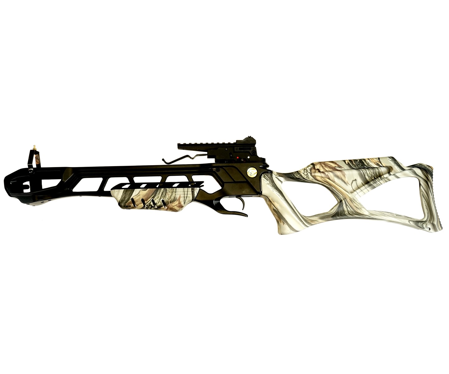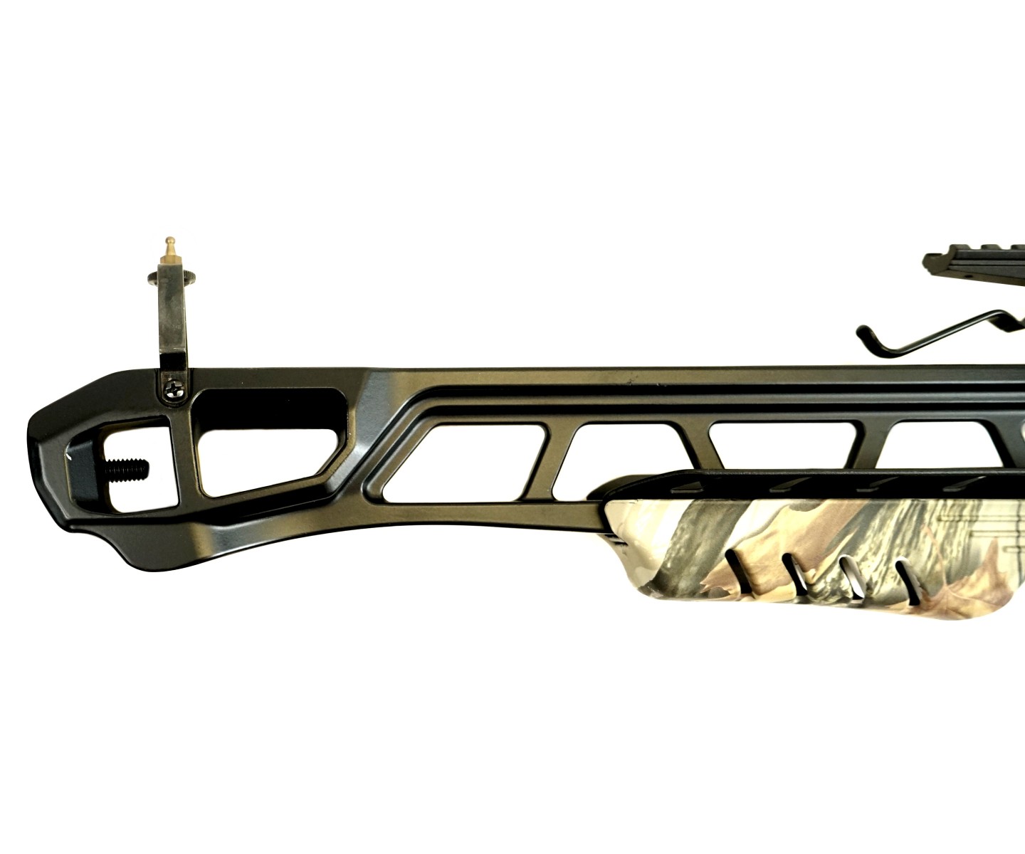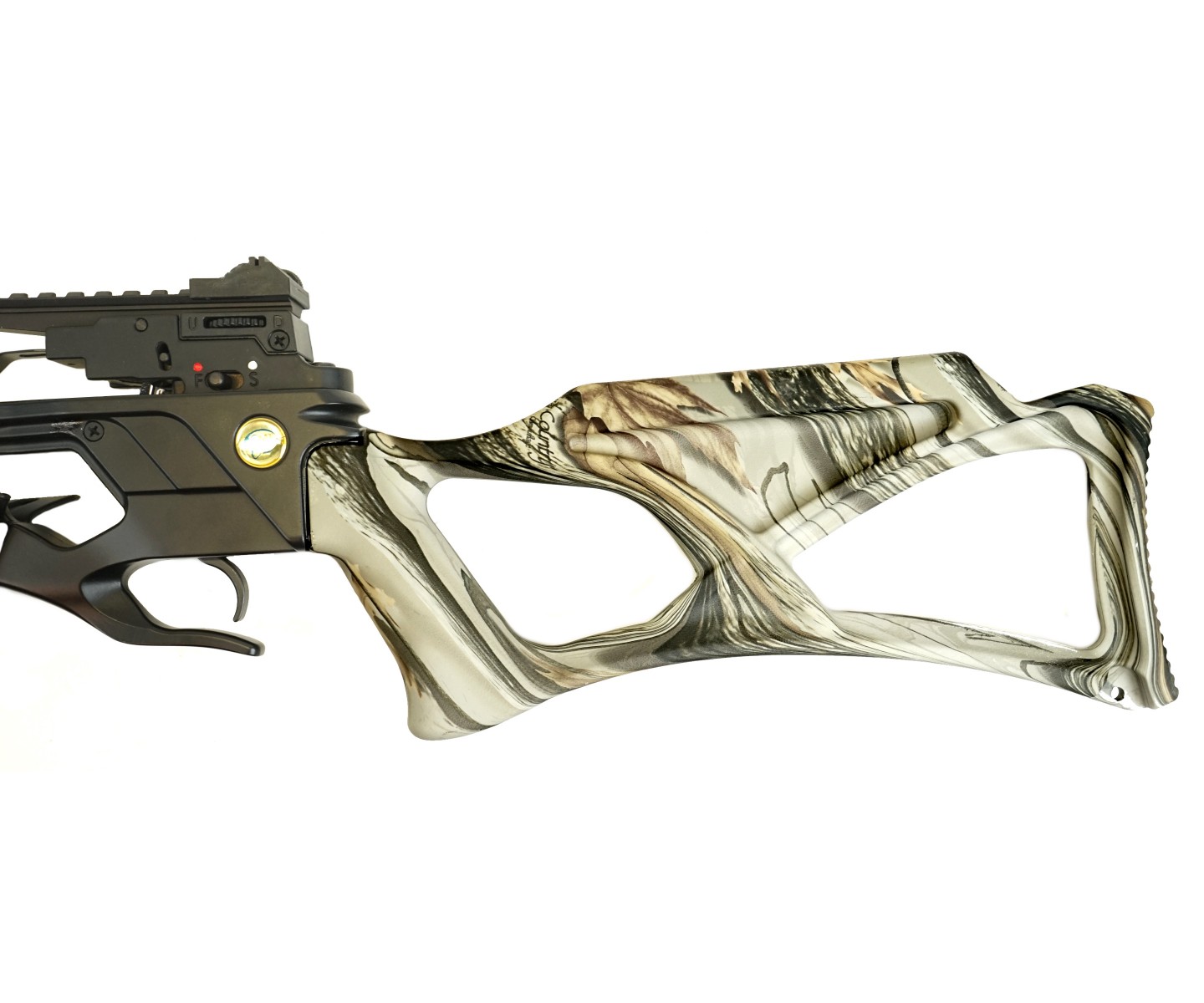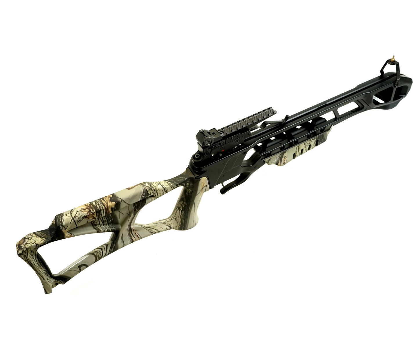 Корпус арбалета полимерный, цвет исполнения – камуфляж. Приклад с рукояткой имеет возможность регулировки. Прицельная планка регулируемая в 2-х плоскостях, имеется направляющая Вивера для установки оптики или дополнительных аксессуаров.