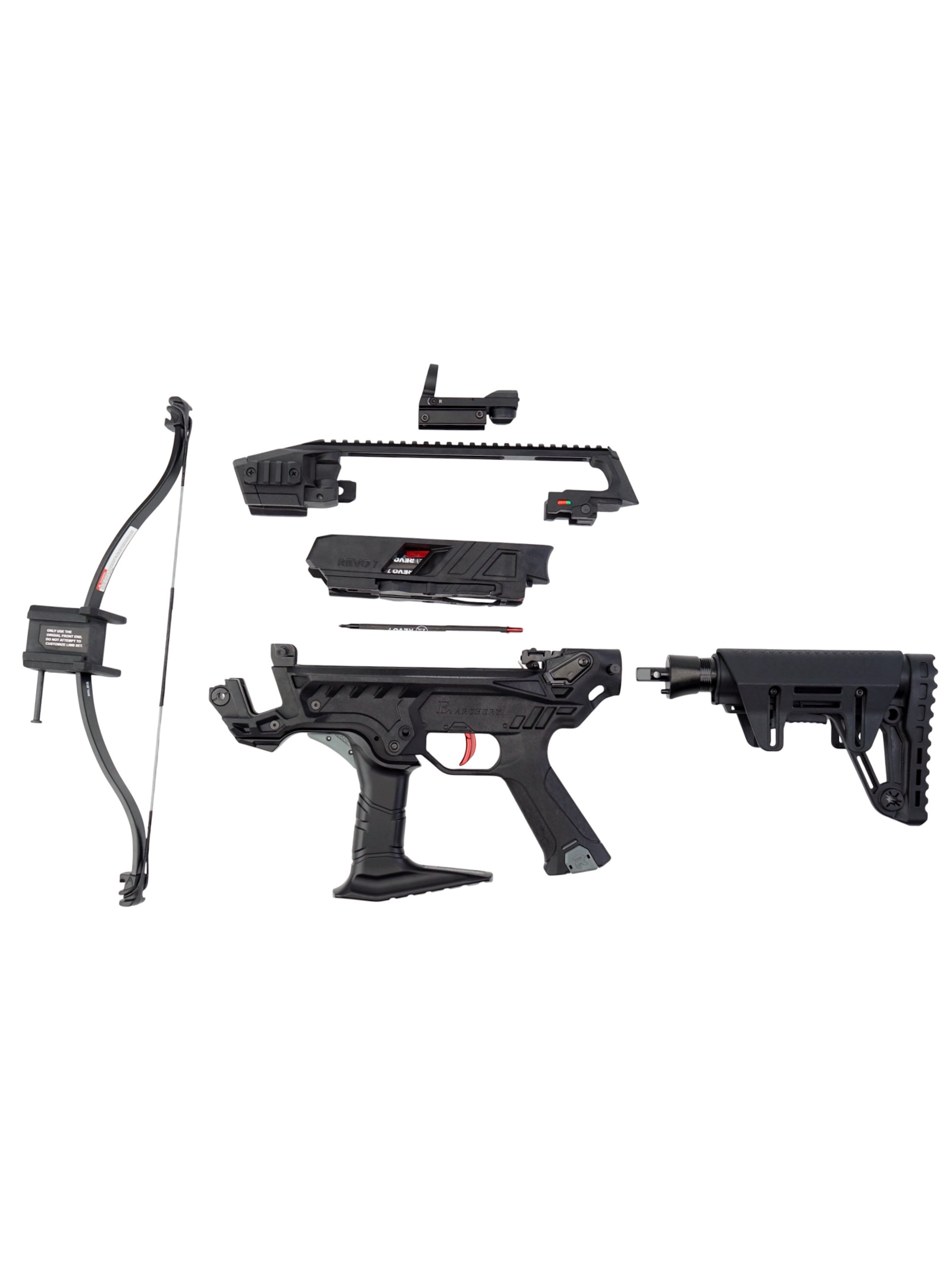Все ключевые узлы арбалета Revo 7 выполнены из металла, прочие части конструкции – из ABS пластика. Как и предыдущие модели Ek Archery, Revo 7 имеет модульную конструкцию, т.е. разбирается на четыре части (плечи, корпус, магазин и приклад) в течении 20 секунд. Арбалет легко прячется в чехол или рюкзак.
