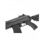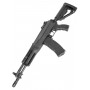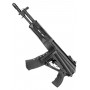 Эта модель – укороченная версия АК-12. Стальные детали: ствольная коробка, крышка ствольной коробки, имитация затвора, механизм фиксации приклада, переводчик огня, предохранительная скоба, клавиша отмыкания магазина, стойка мушки, газовая трубка и мушка. Ствол, ДТК и труба приклада изготовлены из алюминия для снижения веса.