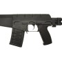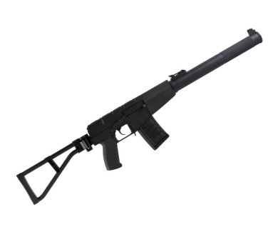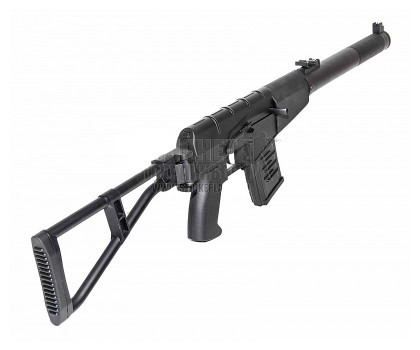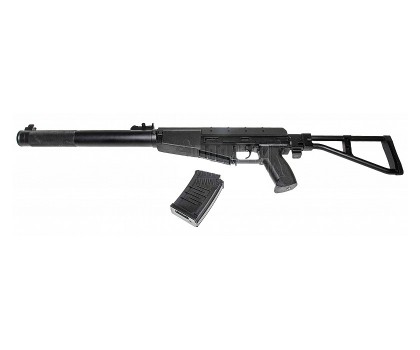 На ствольной коробке предусмотрена планка «ласточкин хвост» для установки оптики. Винтовка изготовлена из сплава алюминия и прочного полимера. По весу данная модификация аналогична снаряженному боевому прототипу – 2,7 кг. Длина автомата «Вал» в разложенном виде составляет – 91 см. Широкая комплектация позволит начать работу с приводом сразу после получения, изделие поставляется с аккумулятором, ЗУ, магазином и паспортом.