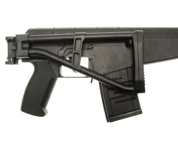 Аккумулятор АК-типа 8,4 V на 1200 mAh устанавливается с использованием ключа под крышку встроенного глушителя. Наличие переключателя на корпусе автомата позволяет менять режимы огня – очередями либо с отсечкой. Хоп-ап регулируемый, скорость полета боеприпасов в пределах 130 м/с. Используется гирбокс версии 3, простой, надежный, с хорошей ремонтопригодностью и взаимозаменяемостью деталей.