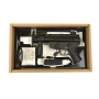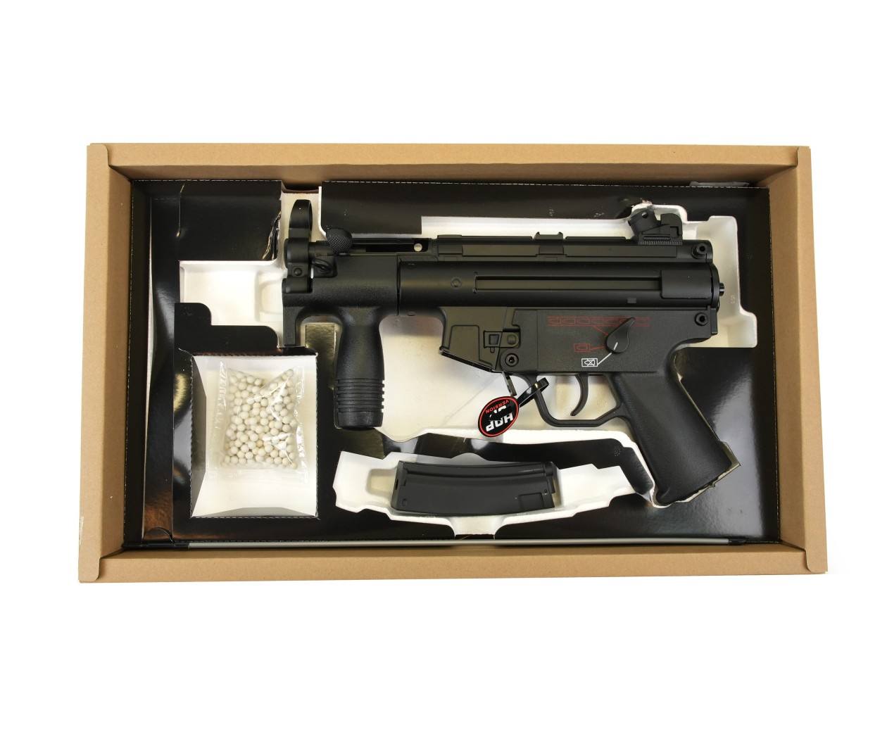 Наличие металлической антабки позволит присоединить к приводу одноточечный ремень. Изделие отличается отличным качеством сборки и дает ощущение обладания солидным оружием. Основной материал – алюминиевый сплав, из него полностью изготовлен корпус оружия. Рукоятка и цевье изготовлены из пластика с ударопрочными свойствами. Вес привода всего 2 кг, длина – 32 см. Комплектуется пистолет-пулемет аккумулятором с ЗУ, шомполом, механическим магазином и памяткой пользователя.