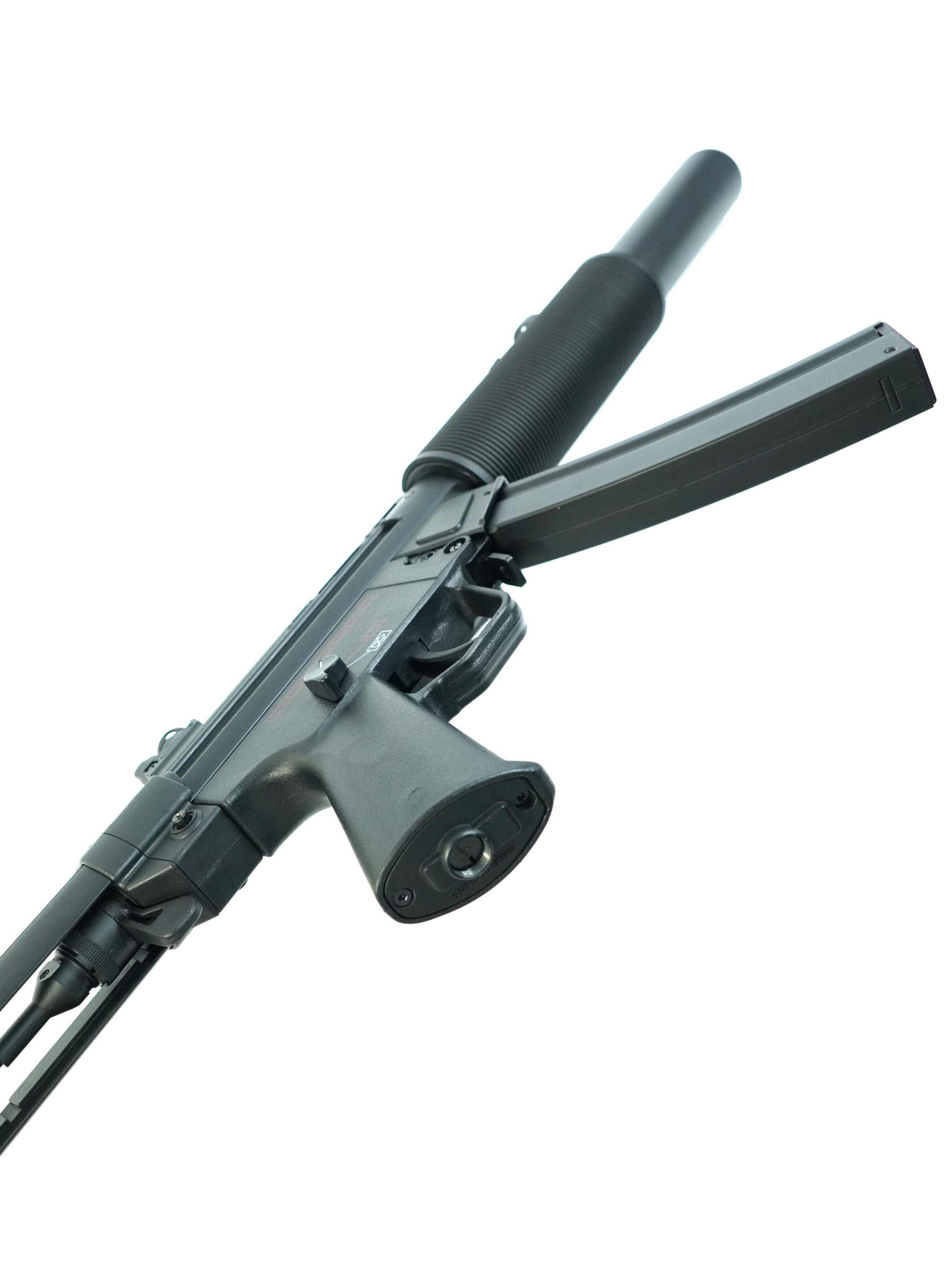 Страйкбольный пистолет-пулемет Cyma H&K MP5SD6 (CM041SD6) – это AEG-реплика известного немецкого карабина, отличающаяся настраиваемым штатным прицелом и высоким качеством исполнения. Изделие копирует боевой прототип и по внешнему виду, и по уровню изготовления и отделки всех составляющих.