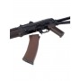 Слева от ствольной коробки расположена направляющая для коллиматоров или оптических прицелов отечественного производства. Если приобрести планку-переходник, можно использовать и оптику зарубежных производителей. Приклад автомата Cyma АКС-74У складной. Модификация выполнена из металла, а цевье из прочного пластика. Качество сборки безупречное, люфтов нет. Весит автомат 2,7 кг, длина – 73 см.