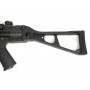 Корпус изделия изготовлен из 2-х частей - ресивера вверху и внизу. Нижний ресивер сделан из надежного пластика, вместе с ним цельно отлиты рукоятки для управления огнём. Ресивер сверху изготовлен из алюминия, его можно быстро отделить от привода для регулирования хоп-апа или же смены ствола. Вверху есть специальное отверстие для прицельных приспособлений. Приклад - рамочный, его можно складывать вбок. Цевье выполнено из алюминия, оснащено RIS-планками для прикрепления разного оборудования.