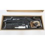 Магазин бункерного типа прозрачный, выполнен из пластика, рассчитан на 450 шариков и позволяет контролировать остаток боеприпасов в процессе стрельбы. Скорость выстрела – 120 м/с. Возможны два режима огня – полуавтоматический и автоматический. Дульная энергия не превышает 3 Дж, так что такой привод может свободно приобрести каждый желающий.