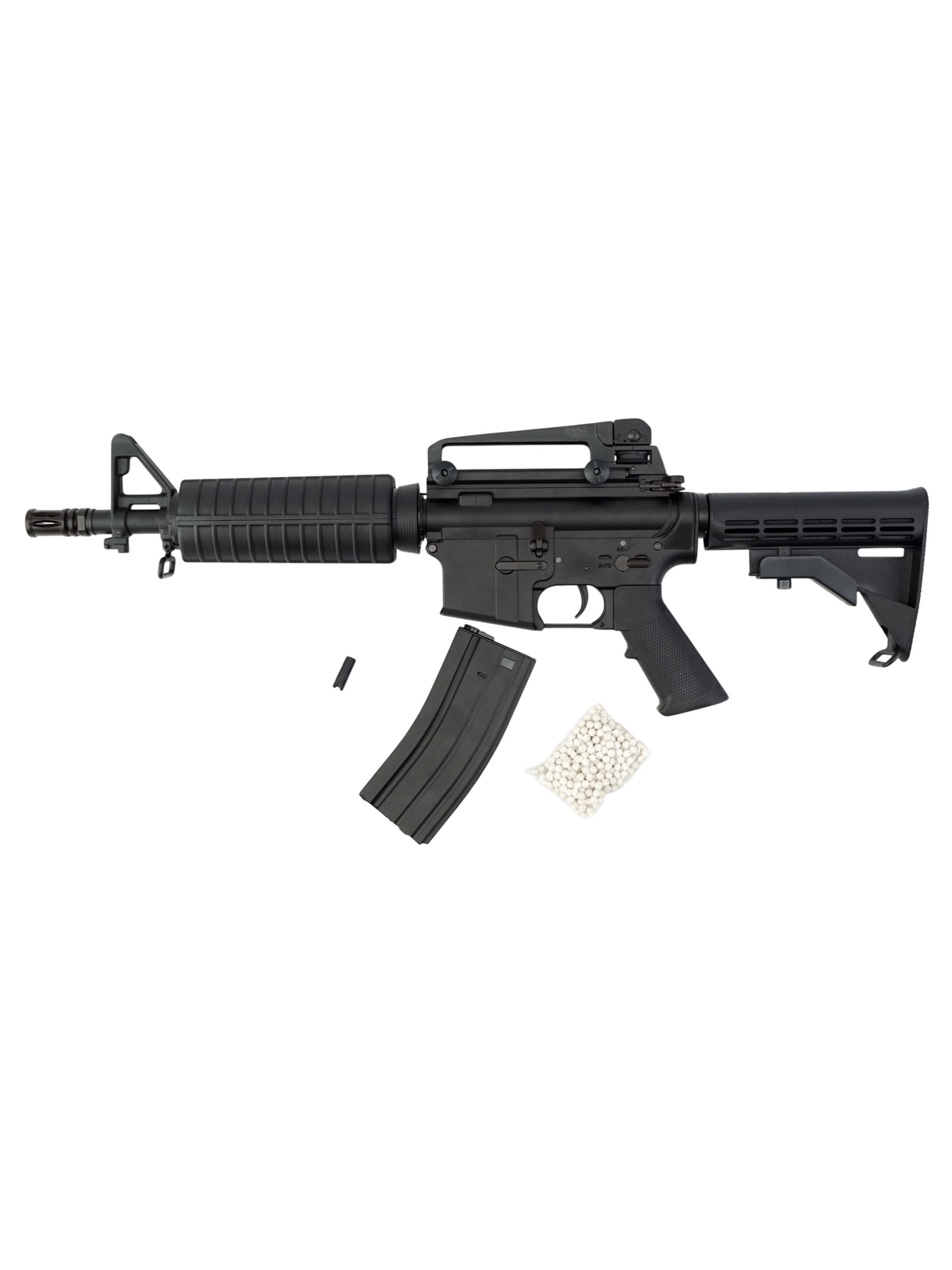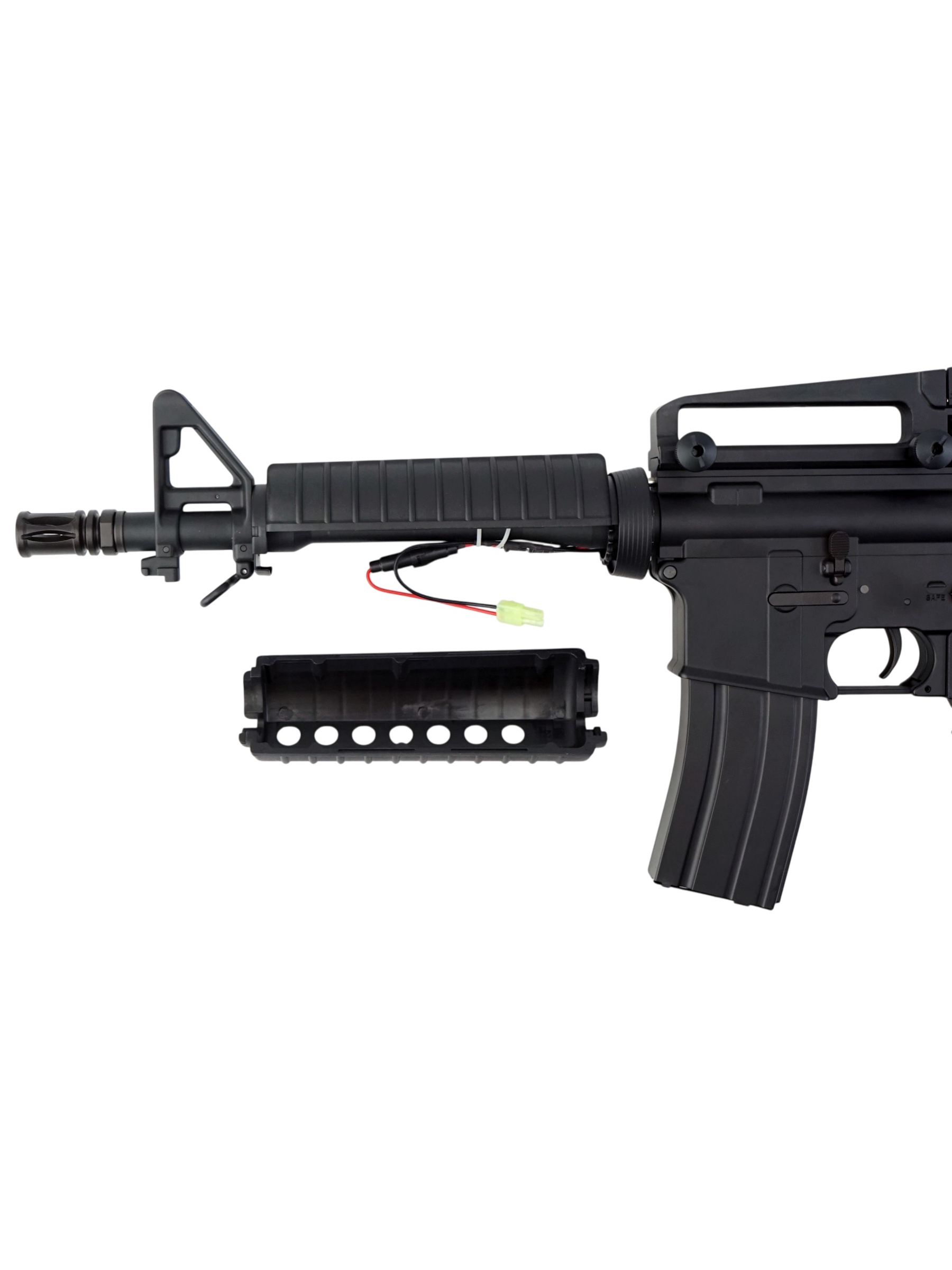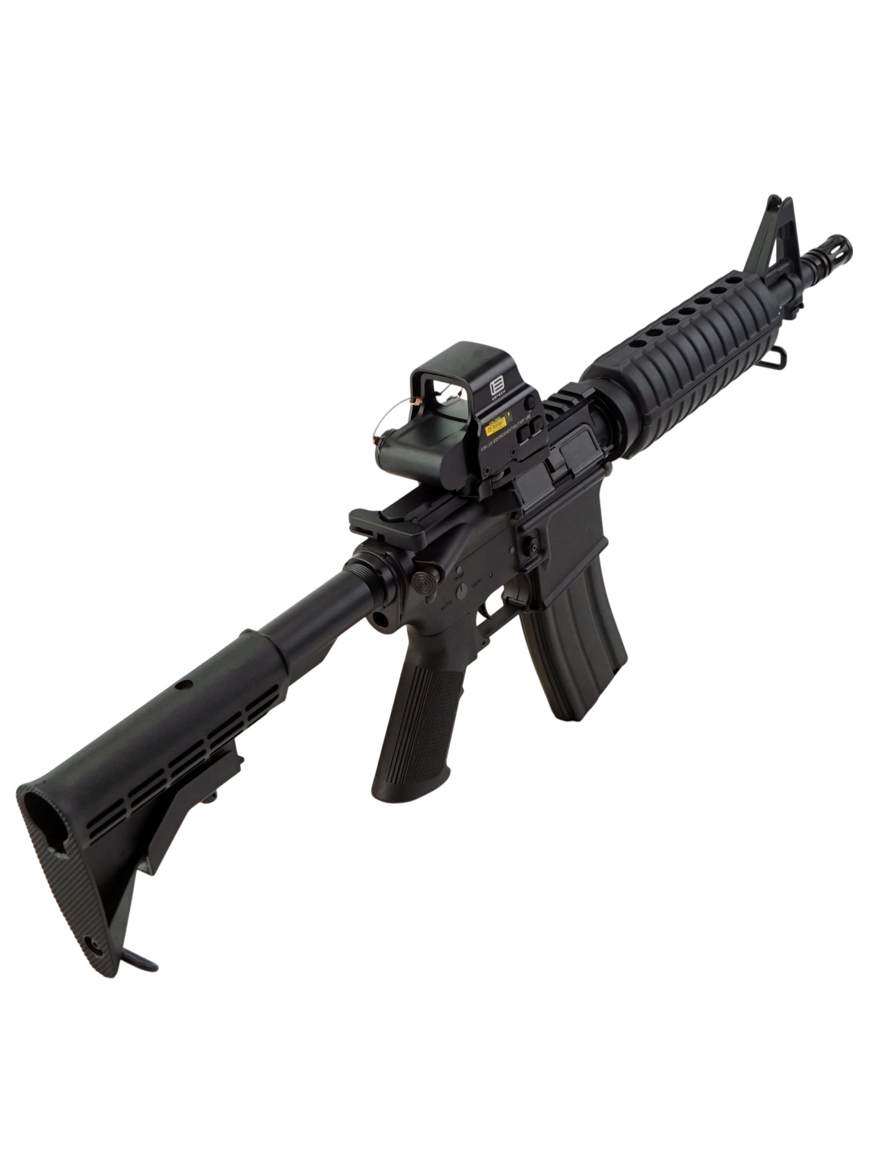 Страйкбольный автомат Cyma M933 M4 CQB (CM018) – это точная копия штурмовой винтовки М2А1 от известного производителя пневматики, надежное и удобное в работе оружие. Привод работает от электромотора, действующего за счет аккумулятора 8,4 V и емкостью в 1100 mAh.