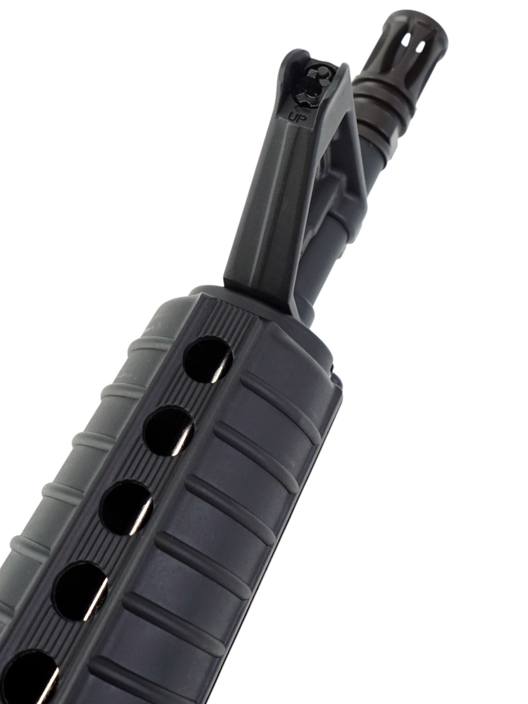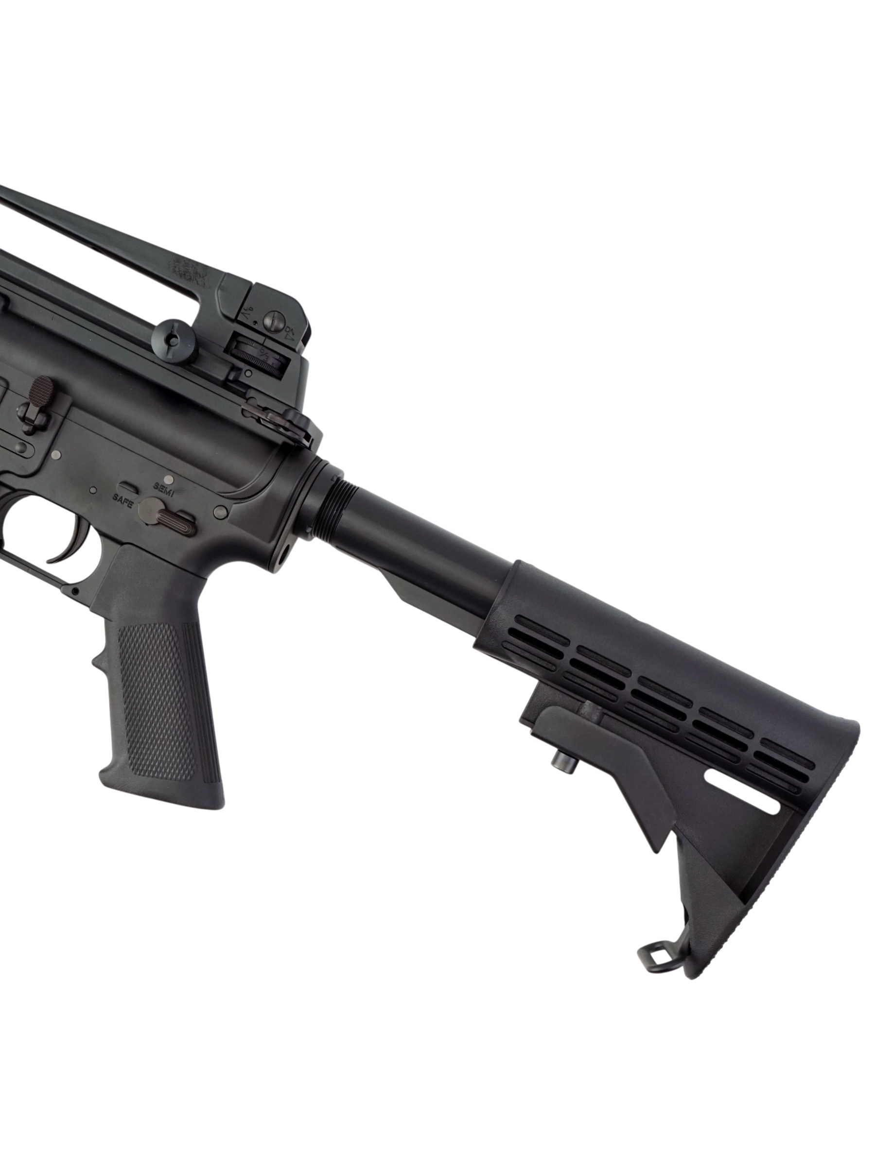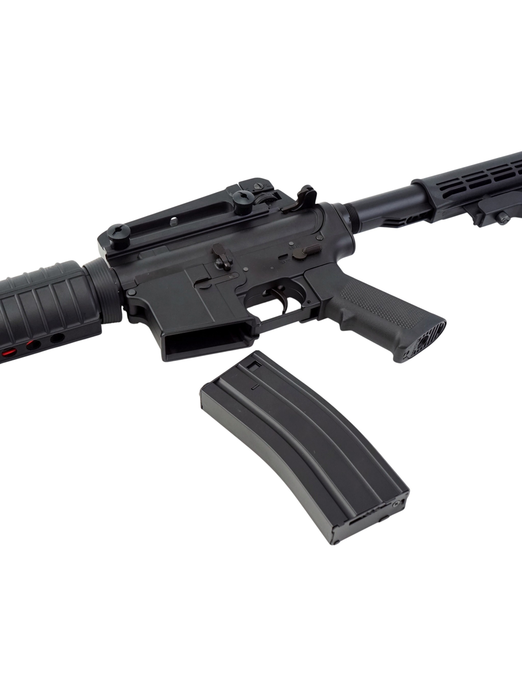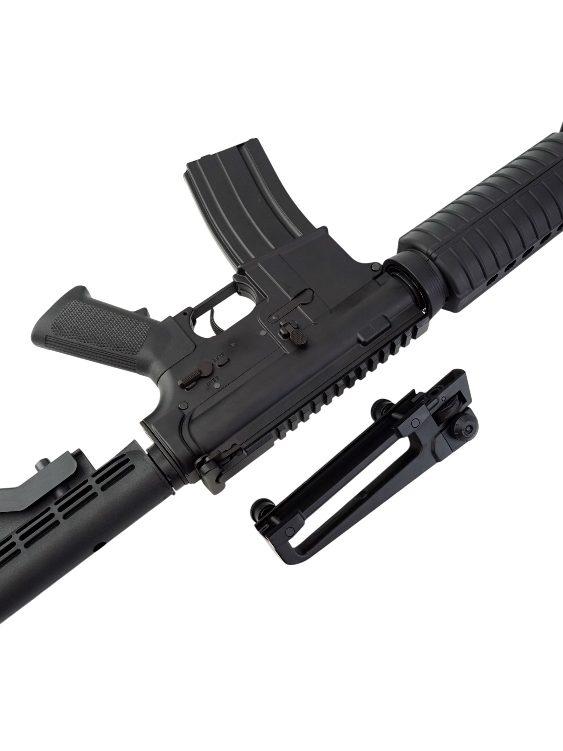 Страйкбольный автомат Cyma M933 M4 CQB (CM018) – это точная копия штурмовой винтовки М2А1 от известного производителя пневматики, надежное и удобное в работе оружие. Привод работает от электромотора, действующего за счет аккумулятора 8,4 V и емкостью в 1100 mAh.
