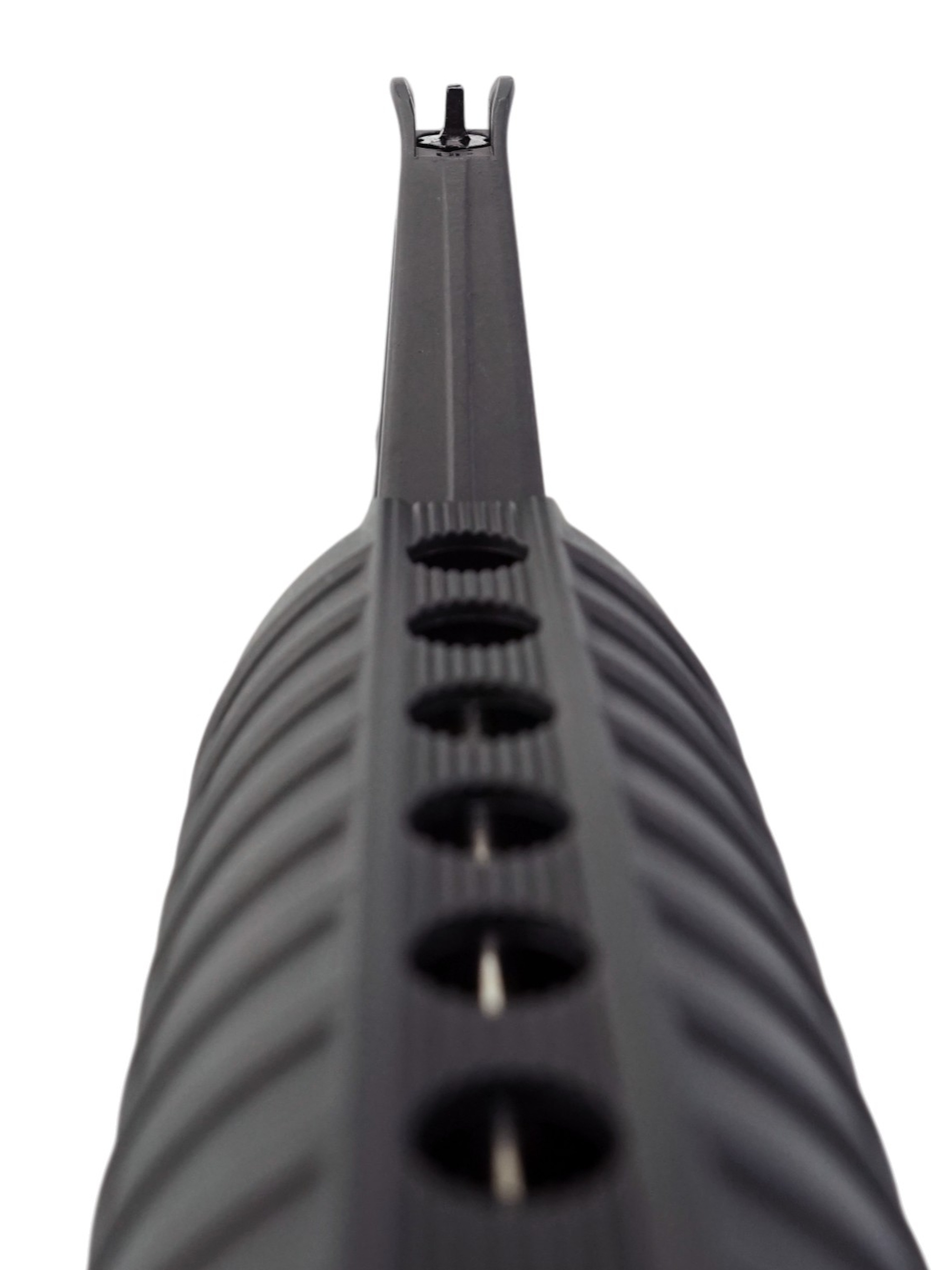 Вес автомата всего 2,6 кг, минимальная длина – 67 см, максимальная, с разложенным прикладом – 75 см.