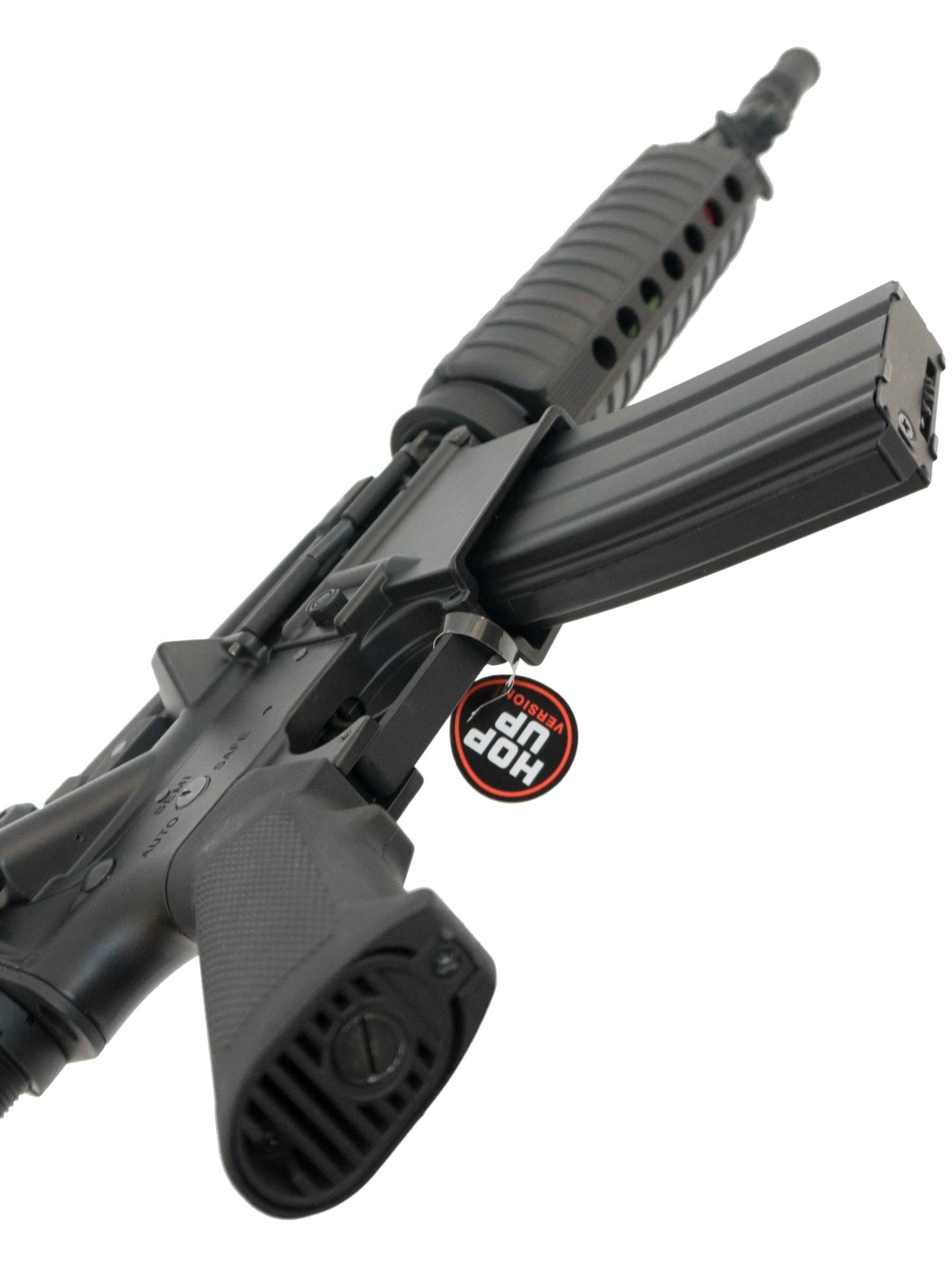 Регулируемая камера хоп-ап металлическая, установлен гирбокс 3-ей версии, простой в обслуживании Магазин бункерного типа на 300 шариков 0,2 гдиаметром 6 мм. Возможен выбор режима огня – очередями или одиночными выстрелами. Скорость выстрела неплохая – 125 м/с. За счет дульной энергии в пределах 3 Дж привод Cyma M933 M4 CQB может купить каждый стрелок.