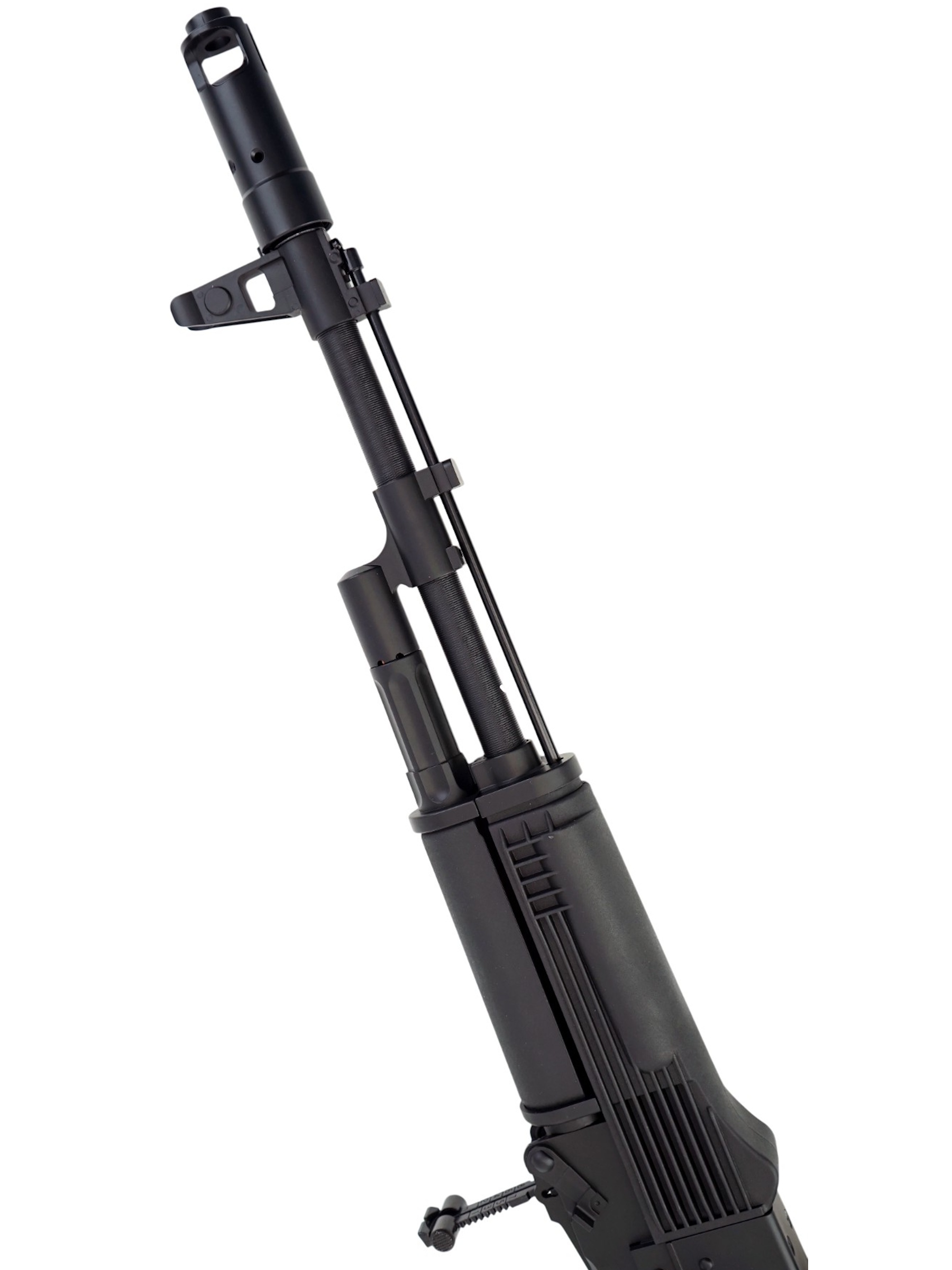 Модификация отличается складным прикладом. Направляющие для дополнительного снаряжения отсутствуют. Основной материал – ударопрочный полимер, ствол и ствольная коробка из алюминиевого сплава. Вес автомата 2,8 кг, длина вместе с прикладом – 94,5 см. Поставляется в комплекте с аккумулятором, ЗУ, магазином, шомполом и набором шариков ВВ.