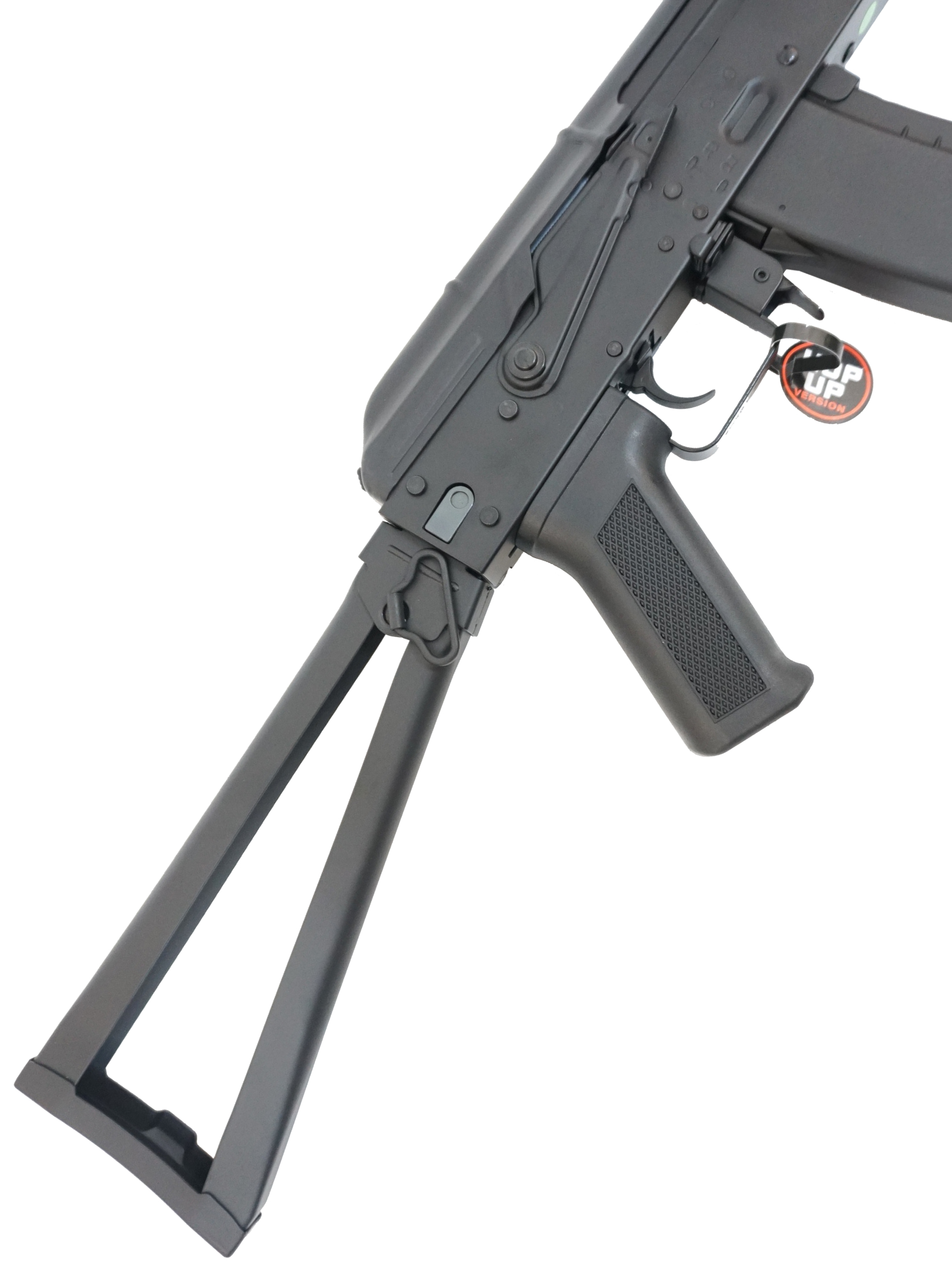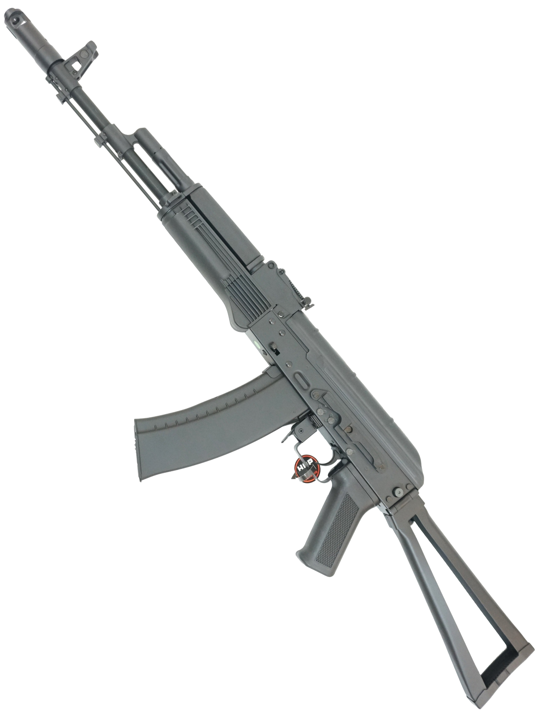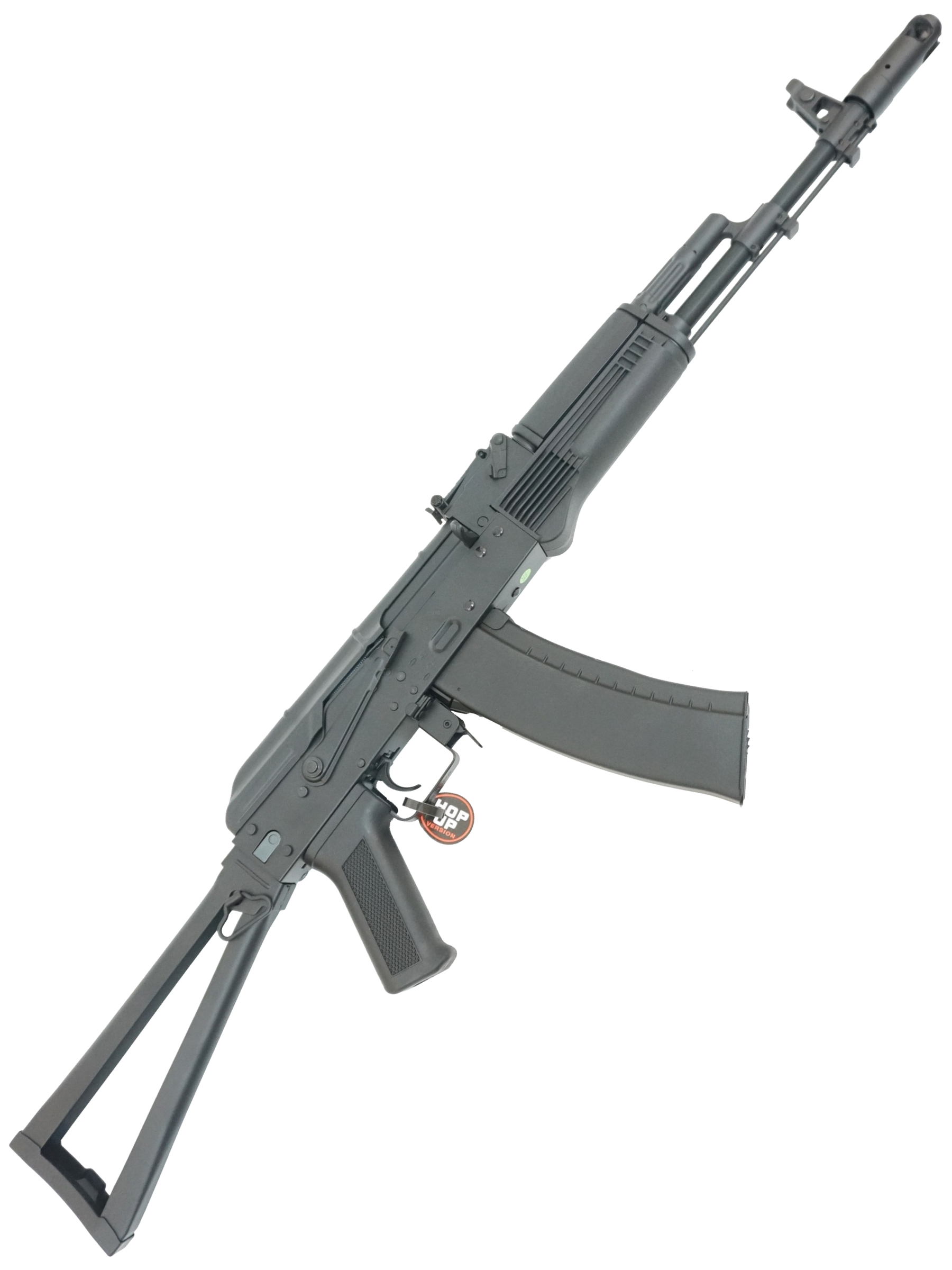 Страйкбольный автомат Cyma АКС-74Н (CM040) – это электропневматическое оружие на базе АКС-74 высокого качества исполнения, модификация со складным прикладом. В этом автомате реализованы два режима огня – как очередями, так и одиночными выстрелами. В базовой комплектации Cyma АКС-74Н показывает достойную скорость выстрела – до 130 м/с.