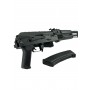 Магазин автомата рассчитан на 500 шариков. Привод показывает скорость выстрела в 125 м/с, что дает возможностью успешно использовать его для стрельбы на средние расстояния. Темп стрельбы – до 800 шариков в минуту. В отсек под крышку ствольной коробки устанавливается аккумулятор никель-металлгидридного типа на 8,4 V и 1100 mAh. Можно использовать также литиевые и литий-полимерные аккумуляторы.