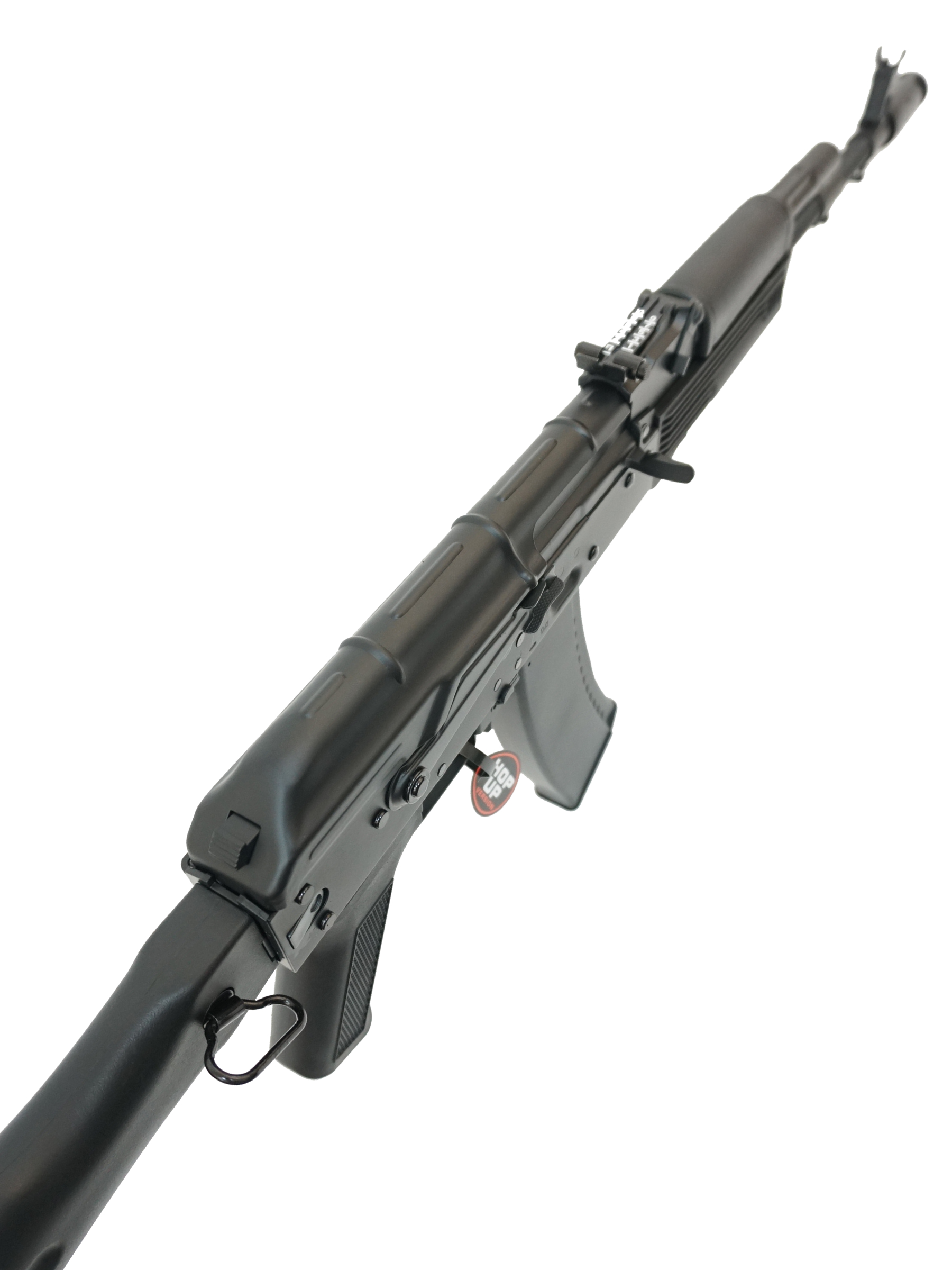 Приклад, цевье и пистолетная рукоятка выполнены из пластика. Изделие отличается хорошей подгонкой деталей между собой и практически полным отсутствием люфтов. Вес автомата приближен к весу боевого оригинала, и составляет 3,2 кг. Длина с разложенным прикладом – 94,5 см. Комплект привода включает шарики, магазин, аккумулятор с зарядным устройством, шомпол и инструкцию.