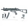 Главной особенностью этой модификации является установка тактического цевья для дополнительного обвеса. Ствол, ствольная коробка и корпус автомата выполнены из сплава на основе алюминия, приклад с тактической рукояткой изготовлены из ABS-пластика. За счет складного приклада автомат подходит для игр в зданиях. Имеются антабки для закрепления ремня. Вес привода 3,19 кг, длина – 74 см. Поставляется привод с аккумулятором и его зарядным устройством, шомполом, набором шариков, магазином-бункером и инструкцией.