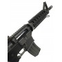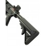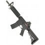 Основной материал автомата Cyma M4 CQB RIS – полимер, что обуславливает легкий его вес, однако требует осторожного обращения с оружием. Тактическое цевье дает возможность установить дополнительное оборудование. Наличие верхней планки Пикатинни обеспечивает возможность дополнить автомат прицелом. Приклад автомата crane-stock, он выдвижной, позволяет настроить необходимую длину оружия для упора в плечо.