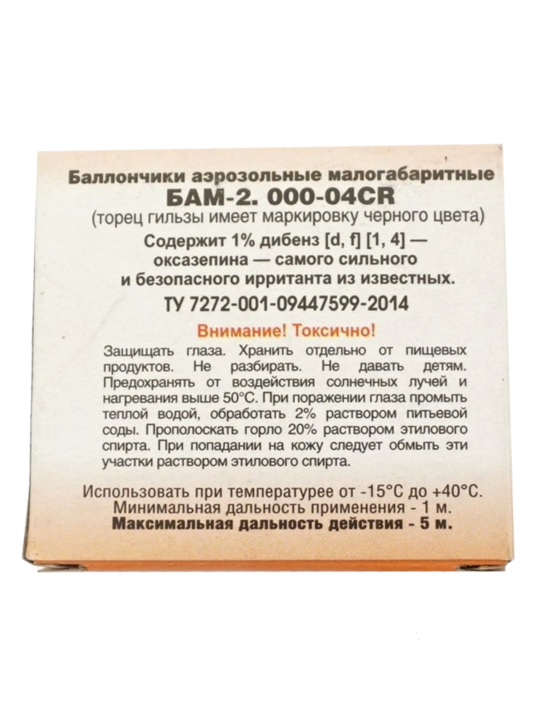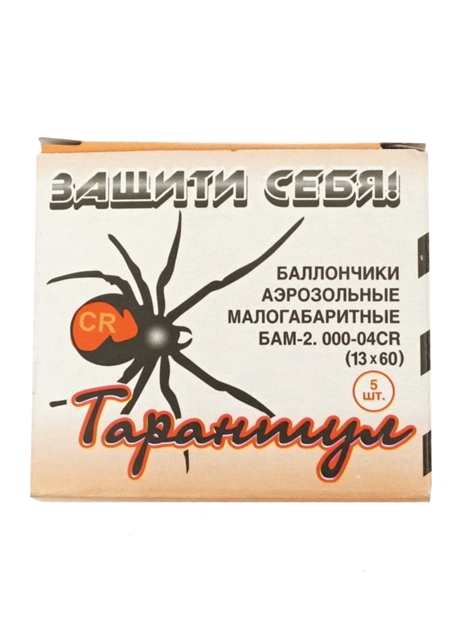 Баллончик аэрозольный малогабаритный «Тарантул» является одним из средств гражданской обороны, разрешенных к использованию на территории Российской Федерации. Выпускается под размеры 13х50 и 13х60. В состав входит 1%-раствор дибензоксазепина (CR) – самый сильный и безопасный ирритант. Надежное действующее средство для защиты от агрессивных людей и животных.
