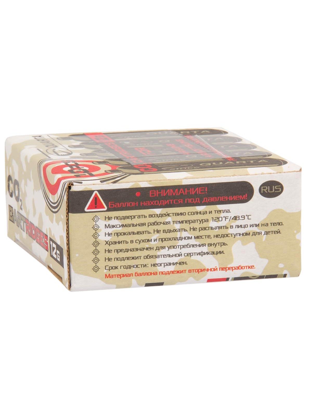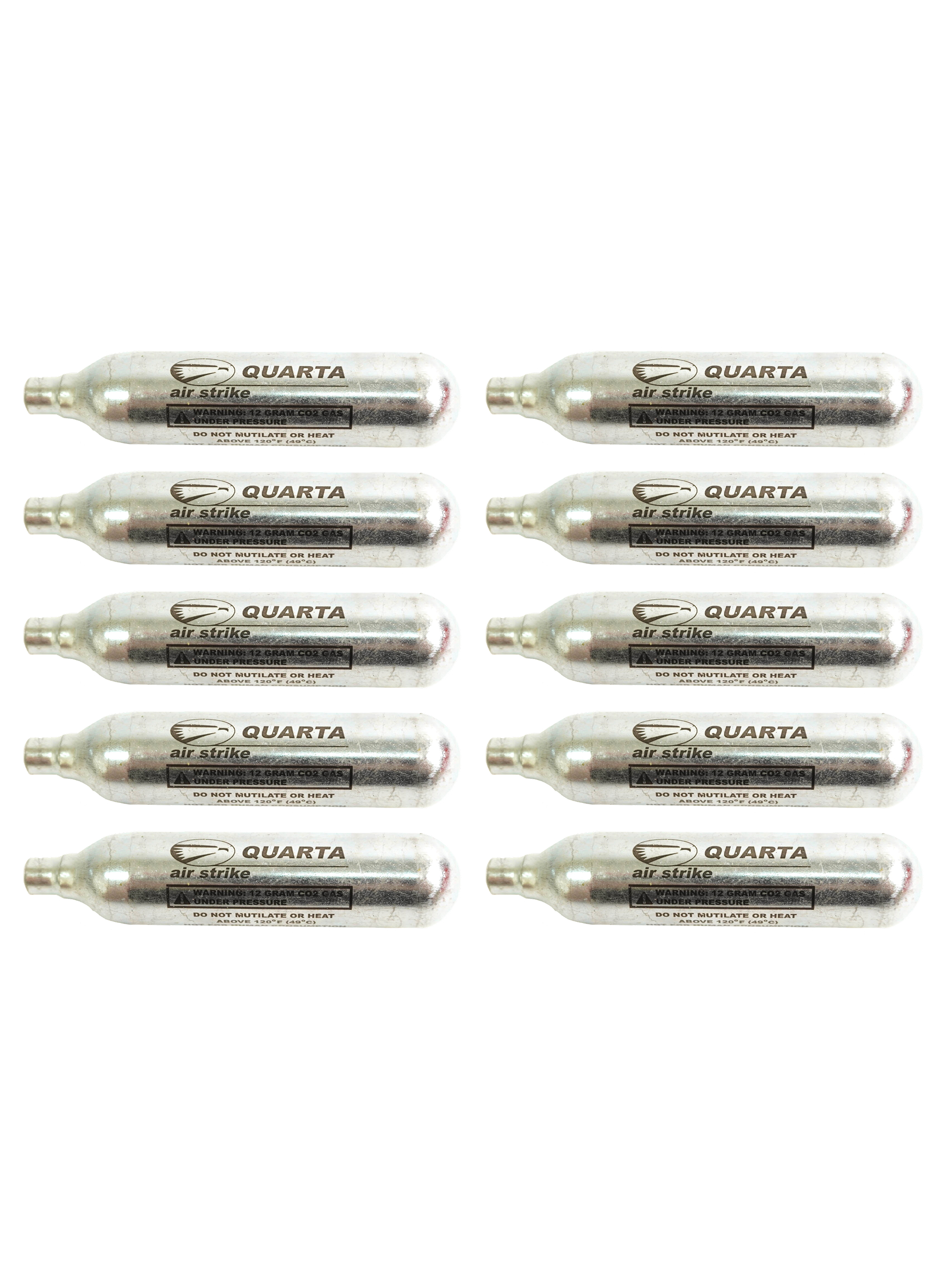 Баллончики CO2 Quarta 12 грамм предназначены для использования в качестве источника энергии в пневматических пистолетах и винтовках, работающих на углекислом газе. В упаковке 10 штук. Баллончик имеет стальной корпус с герметичной закупоркой горлышка. Использование оружия с баллоном CO2 рекомендуется при температуре не ниже +5°С, во избежание падения давления, влекущего критическое снижение мощности.
