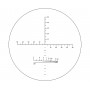 Угломерная измерительная сетка имеет горизонтальную и вертикальную шкалы, размеченные в MIL с ценой деления 5MIL (между длинными штрихами с цифрами – 10MIL). Привязка шкалы в MIL означает, что 10 MIL соответствует 100 см на цели, удаленной на 100 метров. Определенные по шкалам угловые размеры объектов можно использовать для расчета дальности до цели или ее размеров.