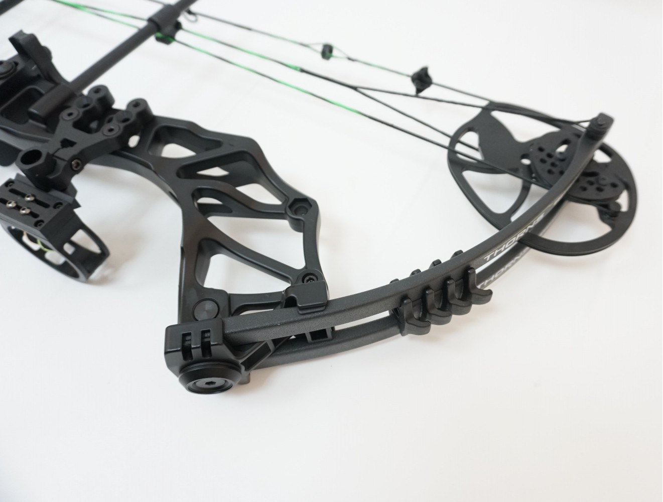 Лук Man Kung MK-CBA5 Thorns имеет современный футуристический дизайн, рукоятка выполнена из алюминия с резиновым покрытием, что обеспечивает удобный хват. Материал плеч углепластик – это легкий и ультрапрочный материал, изначально разработанный для космической индустрии.
