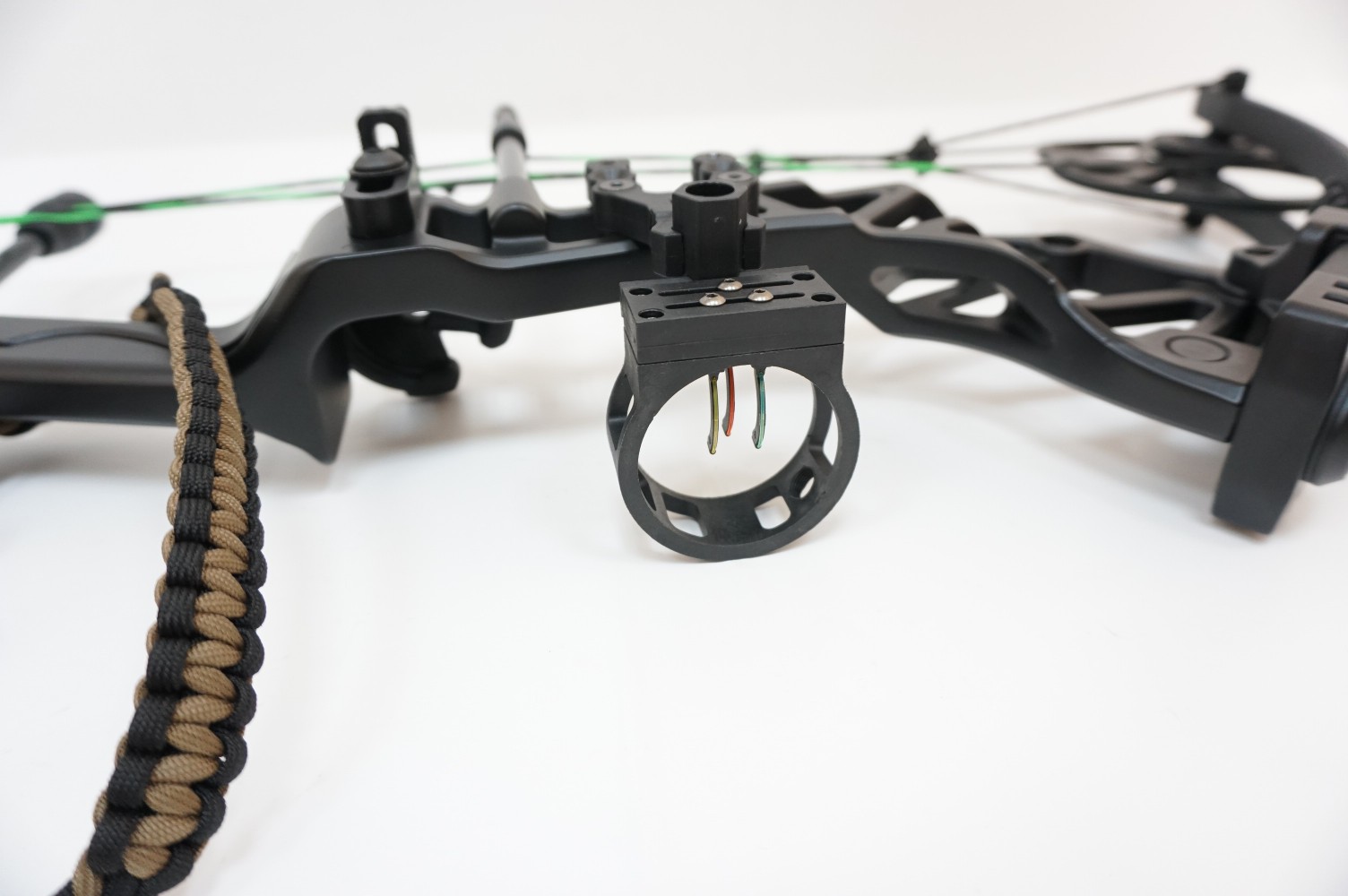 Данная модели представлена в самой широкой комплектации, включающей охотничью полочку, кивер, 3-х пиновый прицел, четыре стрелы из карбона, а также пип-сайт, релиз, стабилизатор, вязочку и петлю для релиза.
