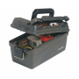Удобный ящик для хранения и транспортировки охотничьих патронов и принадлежностей из прочного не бьющегося пластика. Удобный боковой замок с возможностью повесить навесной замок (обязательное требование при транспортировке патронов в самолёте).
