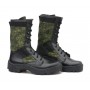 Ботинки ЭСО «Полевые» А107/1 изготовлены из лицевой кожи, комбинированной с универсальной камуфляжной тканью «цифра», особенностью которой является отсутствие резкой контрастности оттенков. В качестве утеплителя здесь использован брезент, имеющий водоотталкивающую пропитку. Для подошвы ботинок «Полевые» А107/1 применен ТЭП, который обеспечивает удобство при перемещении по любым дорогам. Подошва соединена с верхом клеепрошивным методом. Стелька ботинок – Cambrelle+Eva, практичная, легкая и износостойкая. Для защиты ноги от ударных нагрузок предусмотрен термопластичный подносок. Ботинки имеют высоту 26 см, глухой клапан максимально снижает возможность попадания внутрь обуви пыли, мусора или мелких предметов.