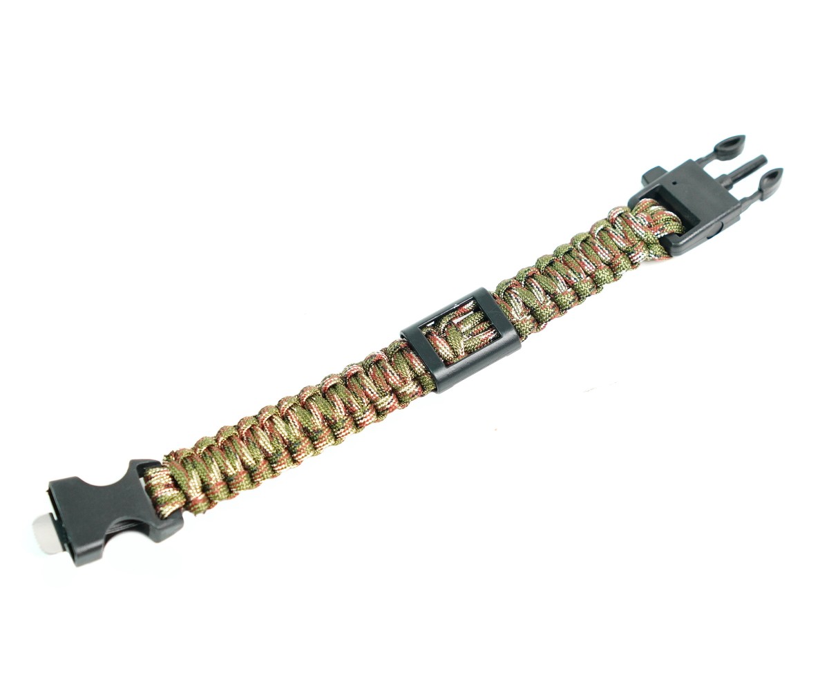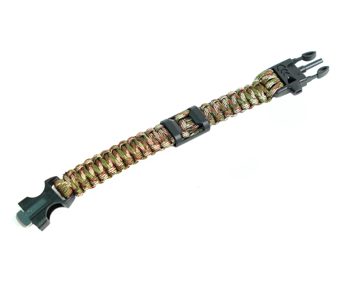 Можно носить на руке в сплетенном виде, или расплести и получить шнур-корд, которым можно закрепить вещи, соединить такелаж, и т.д. Многофункционален: помимо шнура, включает в себя кресало, открывалку для бутылок и свисток для подачи звукового сигнала.