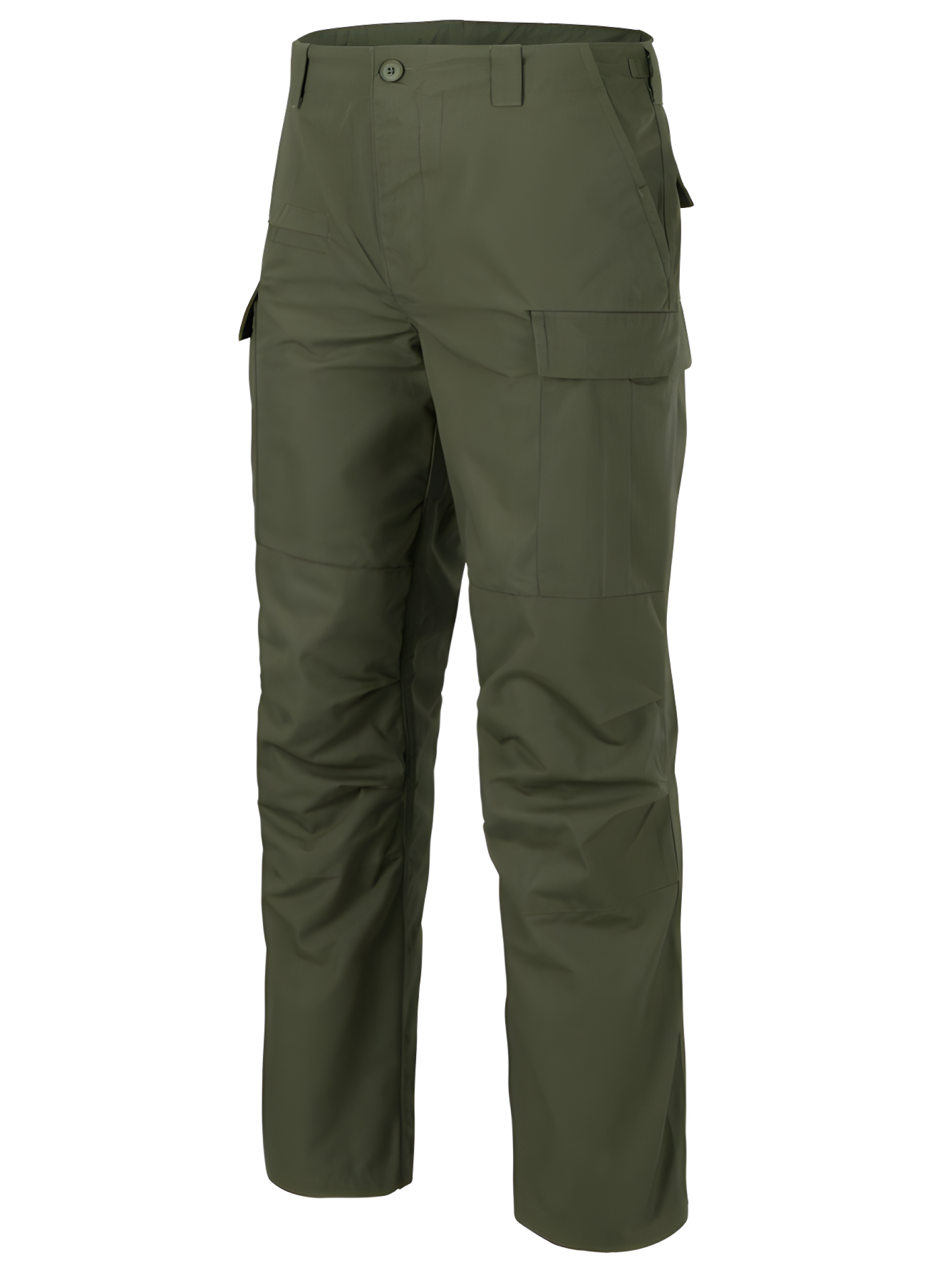 Helikon-Tex® BDU Mk2 Pants — модернизированная версия классических брюк Battle Dress Uniform или просто BDU. Изготовлены из материала PolyCotton Ripstop (50% полиэстер, 50% хлопок): поликоттон со специальным укрепляющим плетением (Ripstop). Брюки BDU Mk2 имеют узкие штанины, и дополнительный карман для смартфона. Брюки усилены дополнительным слоем материала на коленях, ягодицах и краях различных карманов.