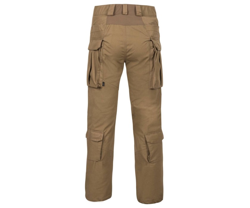 Классические набедренные карманы имеют усиления по краям, чтобы избежать повреждений от ножевых зажимов. Дополнительные задние карманы с усиленными краями подойдут для более крупных предметов, таких как магазин для карабина. На бедрах расположены большие вместительные карманы-карго на пуговицах. На голенях имеются карманы меньшего размера, закрывающиеся лентой с крючками и петлями, в которые поместятся предметы первой необходимости, например, полевая одежда.