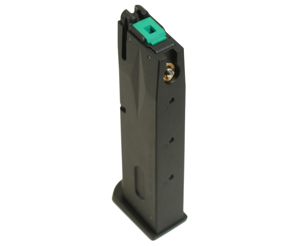 Механический магазин для использования со страйкбольным пистолетом модели G&G GPM9 Mk3 (Beretta). Магазин на грингазе (green gas), выполнен из металла, вмещает 27 шаров.