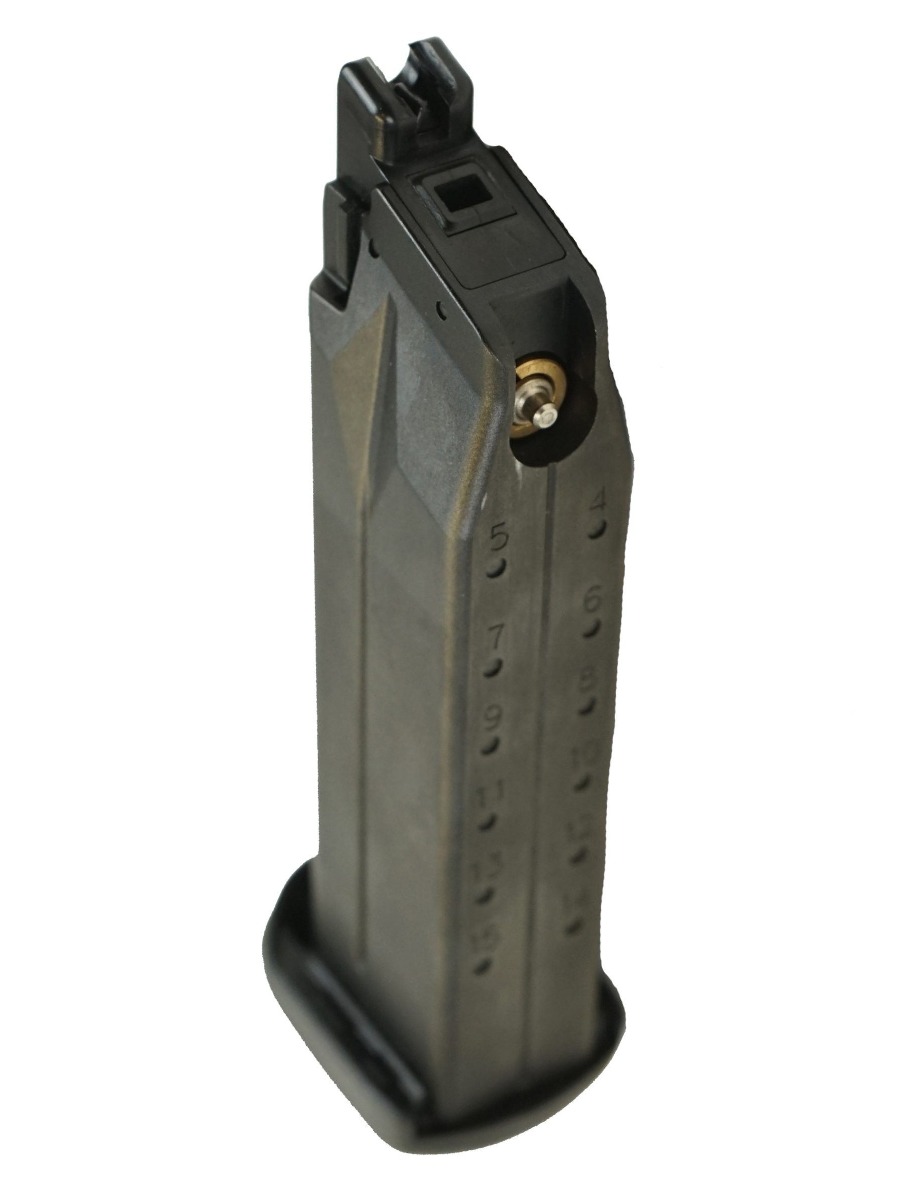 Запасной магазин для страйкбольного пистолета FNX-45 Tactical (на грин-газе), вместимость составляет 28 шариков.