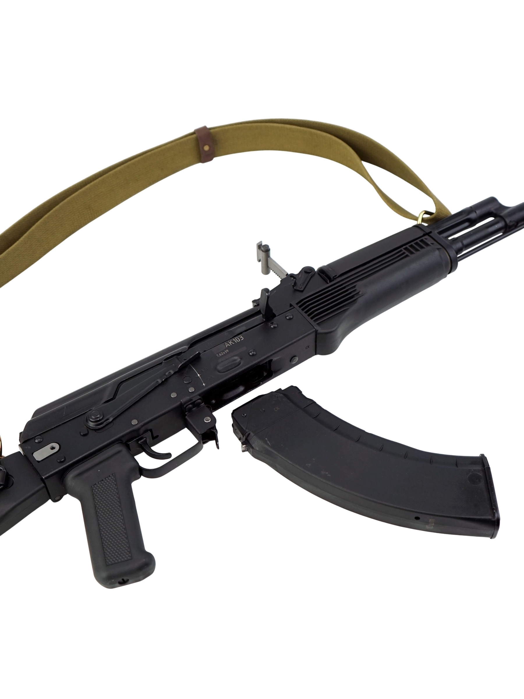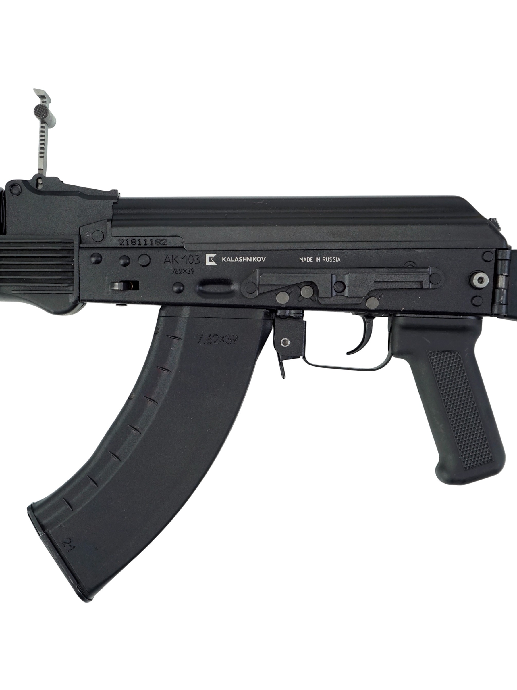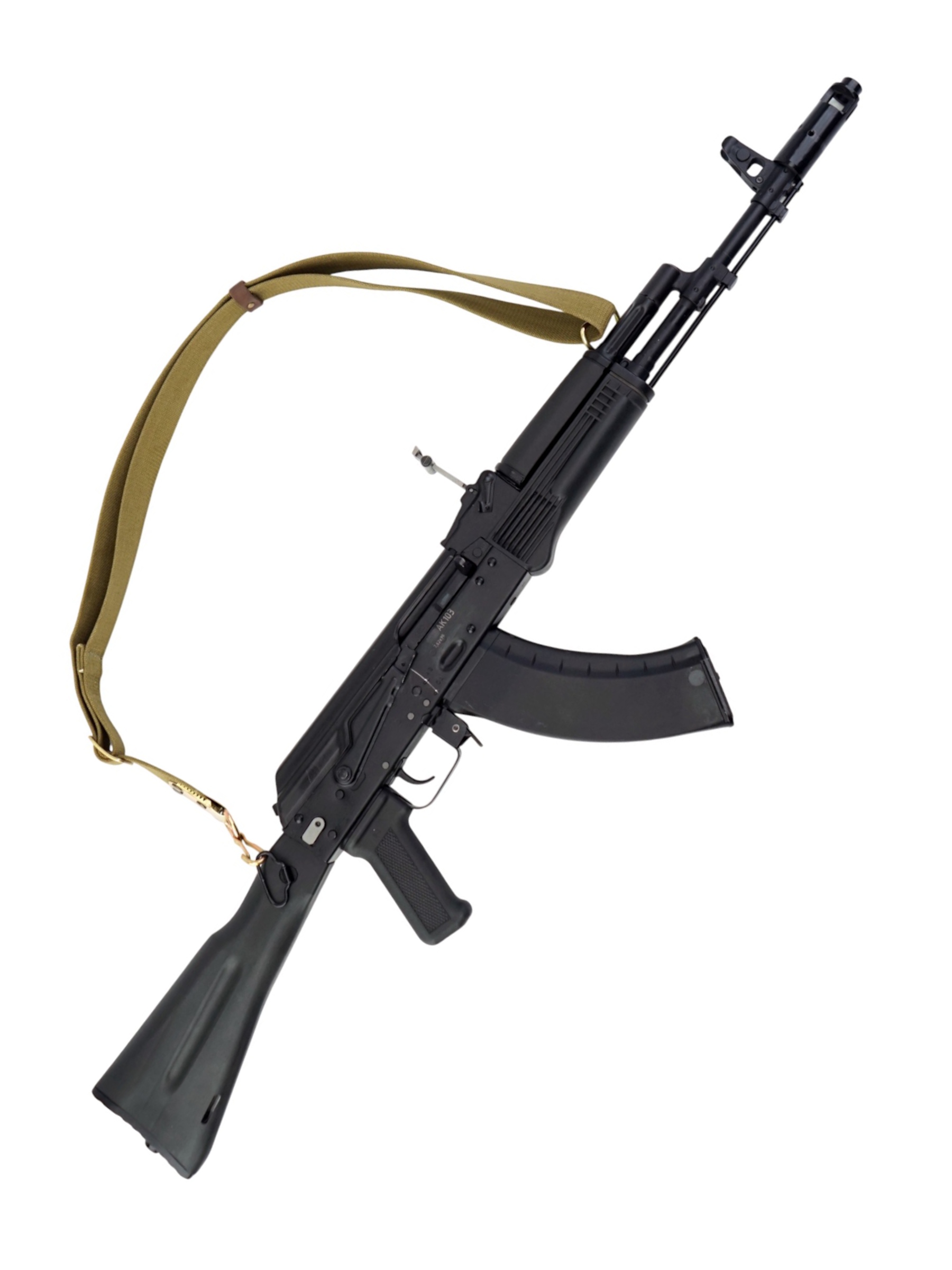 Автомат Калашникова АК-103 является экспортной модификацией штатного автомата Российской армии АК-74М. Главным (и фактически единственным) оличием АК-103 от АК-74М является калибр - этот автомат "сотой" серии использует патроны калибра 7.62 мм (7.62х39 М43) и соответствующие магазины (совместимые с магазинами более старых автоматов АК / АКМ), в остальном автоматы идентичны. В 2006 году значительное количесвто автоматов АК-103 (100 000 штук) было закуплено в Ижевске для Вооруженных сил Венесуэлы. АК103 является индивидуальным оружием армейских и специальных подразделений.