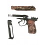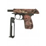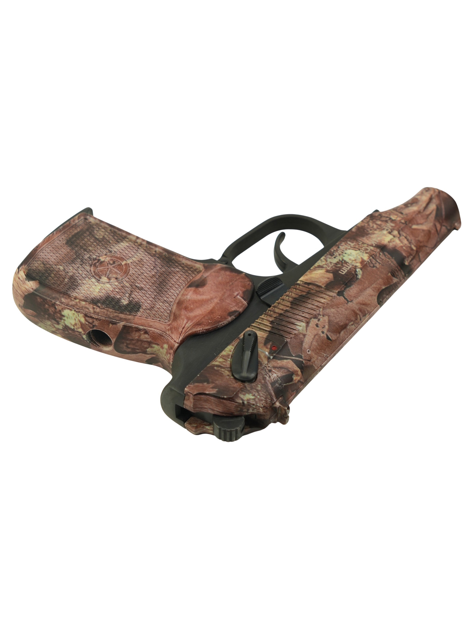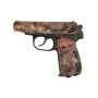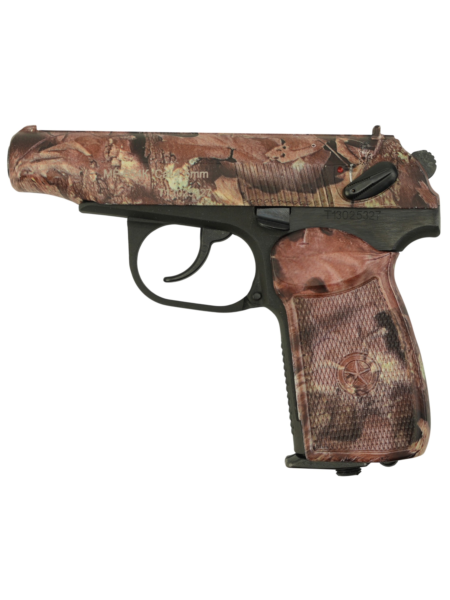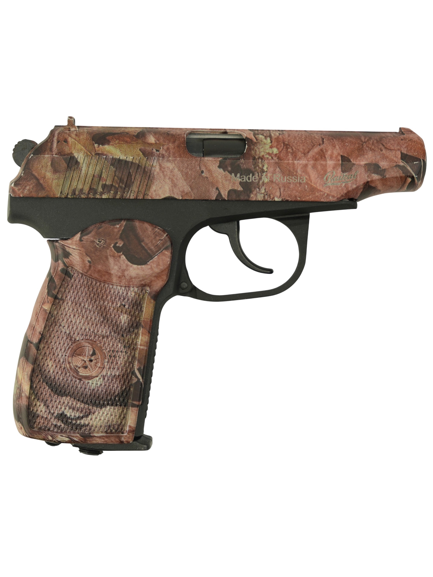 МР-654К-23 - это еще одна газобаллонная копия всем известного пистолета Макарова. Пистолет сделан в необычном камуфляжном дизайне, что придает ему крайне интересный вид. На Ижевском механическом заводе когда-то производился оригинальный пистолет Макарова. Разумеется, работники данного завода знают как можно сделать пистолет очень похожим на огнестрельный и превосходно справляются с такой задачей.