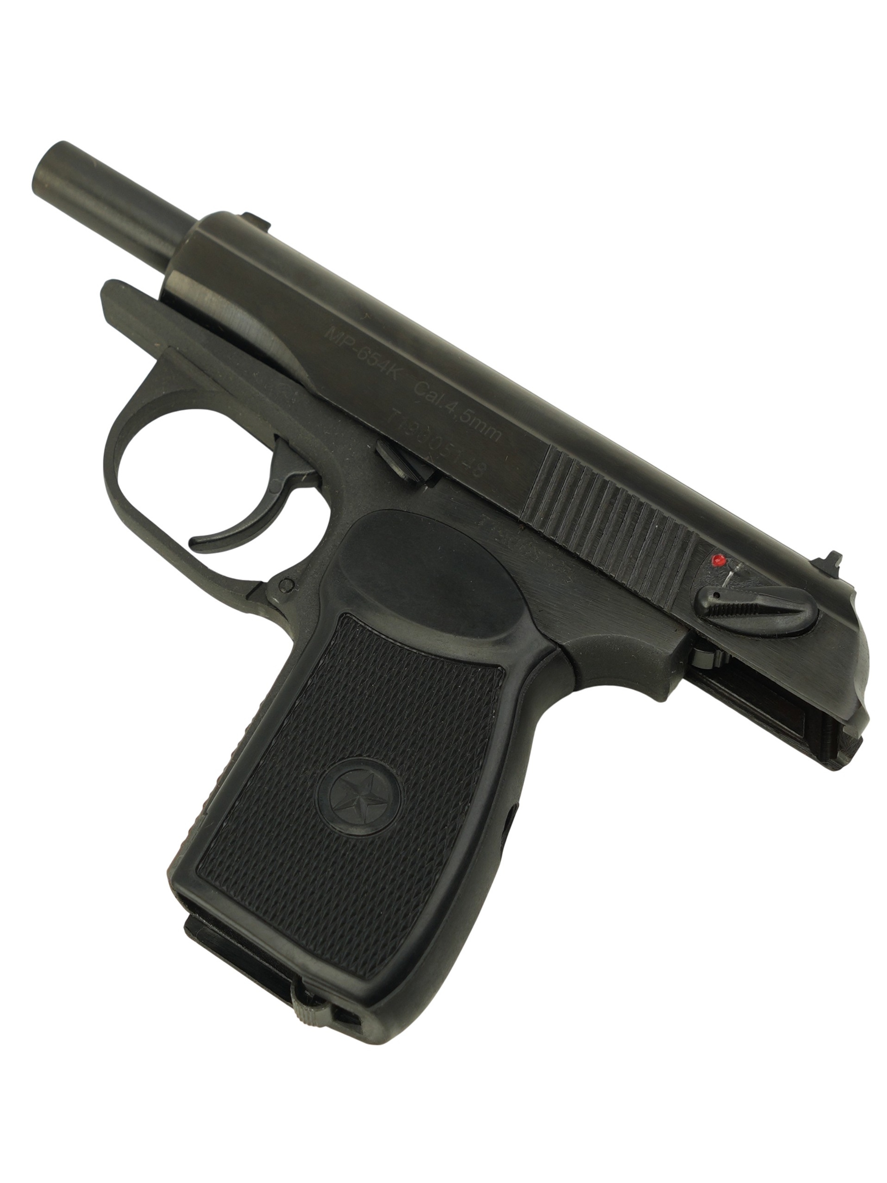 Пневматический пистолет МР-654К (ПМ, черная рукоять) – это одна из первых пневматических модификаций, прототипом которой является пистолет Макарова. Впервые эта модель выпущена на Ижевском заводе «Байкал» еще в начале 90 х годов. Версия популярна не только благодаря неплохим техническим характеристикам, но и из-за своей невероятной схожести с боевым «братом».