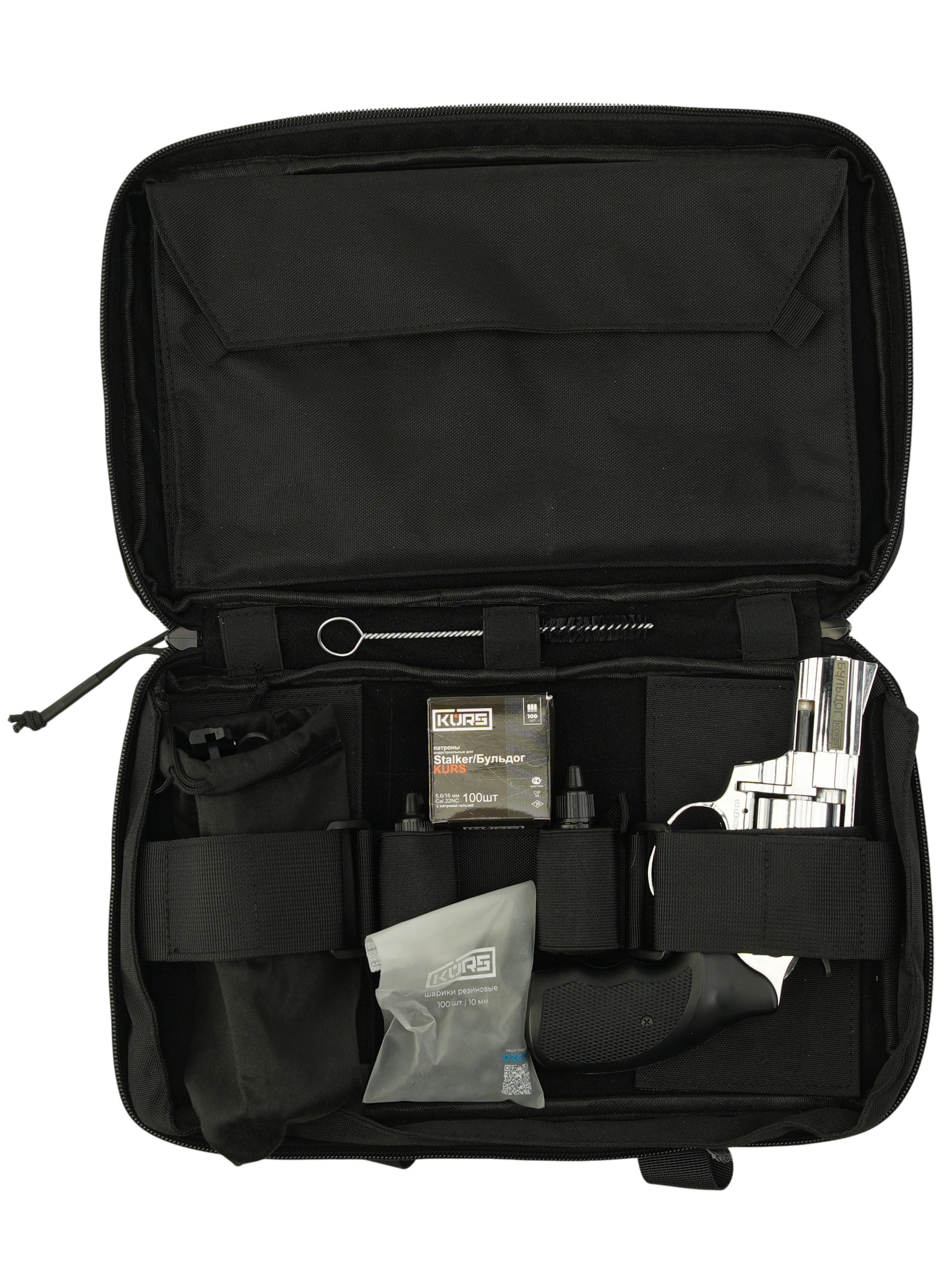 | Комплектация (?): | револьвер, сумка, мишени, защитные очки, масло, средство для удаления нагара, ёршик, патроны Kurs, шарики резиновые, паспорт (инструкция) |