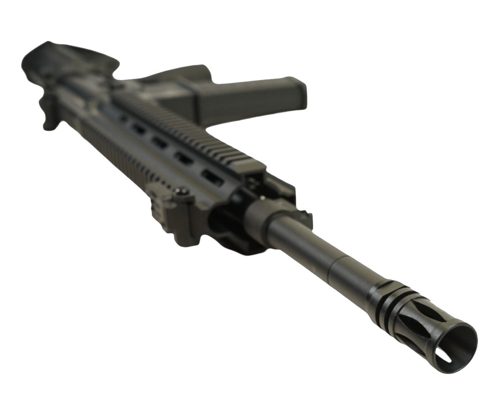 Корпус и цевье привода выполнены из алюминиевого сплава. Ствольная коробка состоит из двух половин: верхнего и нижнего ресиверов, которые соединяются двумя штифтами. К верхнему ресиверу крепятся ствол и цевьё, к нижнему - направляющая приклада и пистолетная рукоятка. Все соединения выполнены плотно и надёжно, люфты полностью отсутствуют. На крышке верхнего ресивера выполнена стандартная планка пикатинни, на которую можно установить практически любой коллиматорный или оптический прицел. Карабин имеет функцию затворной задержки. Маркировки на корпусе полностью соответствуют боевому оригиналу.