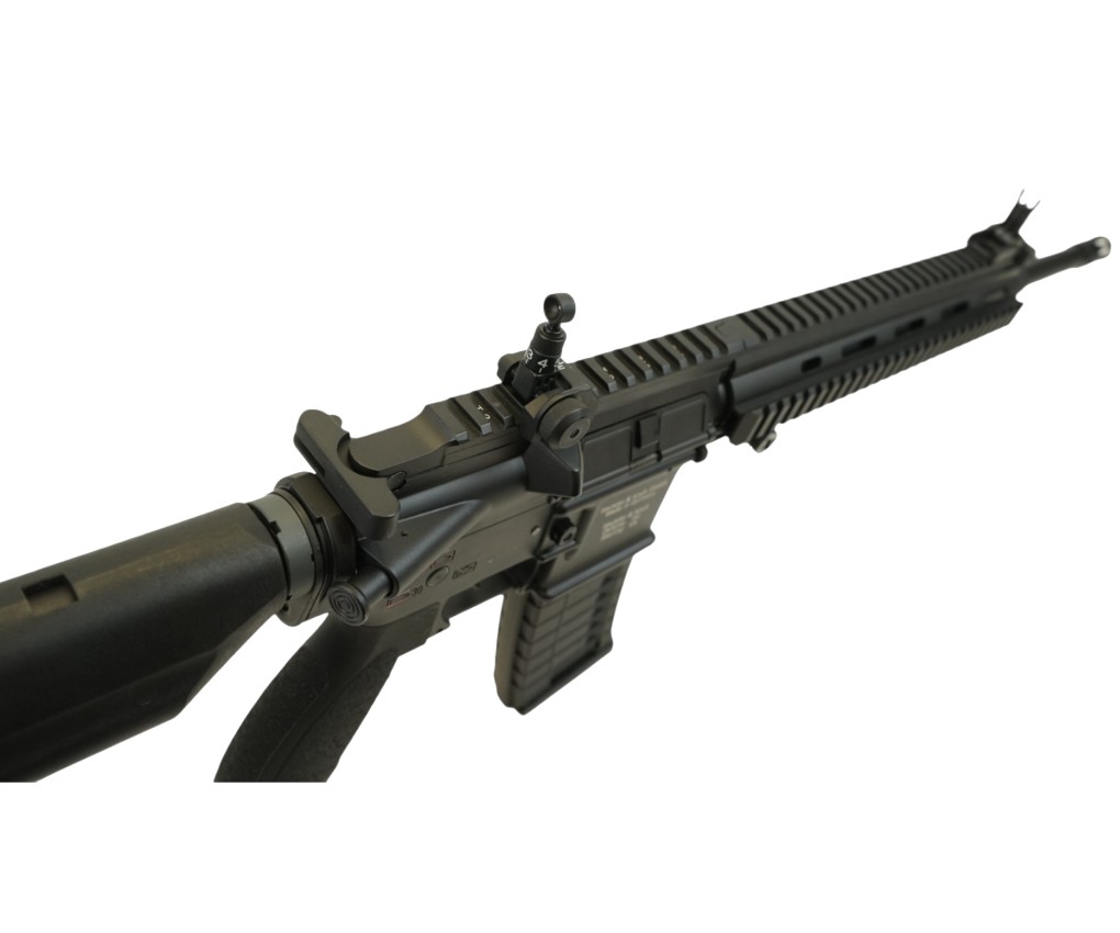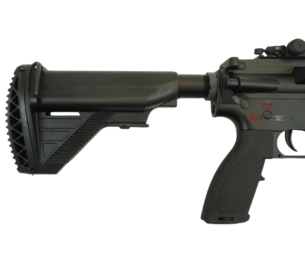 Штатные прицельные приспособления выполнены в виде складных съемных мушки и диоптра. Приклад пластиковый раздвижной, нескладной. В верхней части приклада с обеих сторон расположены антабки для крепления ремня, так же ремень можно закрепить на прикладе при помощи ременного обхвата. Конструкция антабок позволяет закрепить ремень как для использования с правой, так и с левой руки. Кнопка сброса магазина находится на правой стороне нижнего ресивера и позволяет одинаково удобно произвести замену магазина любой рукой. Пистолетная рукоятка выполнена из ударопрочного АВS пластика.