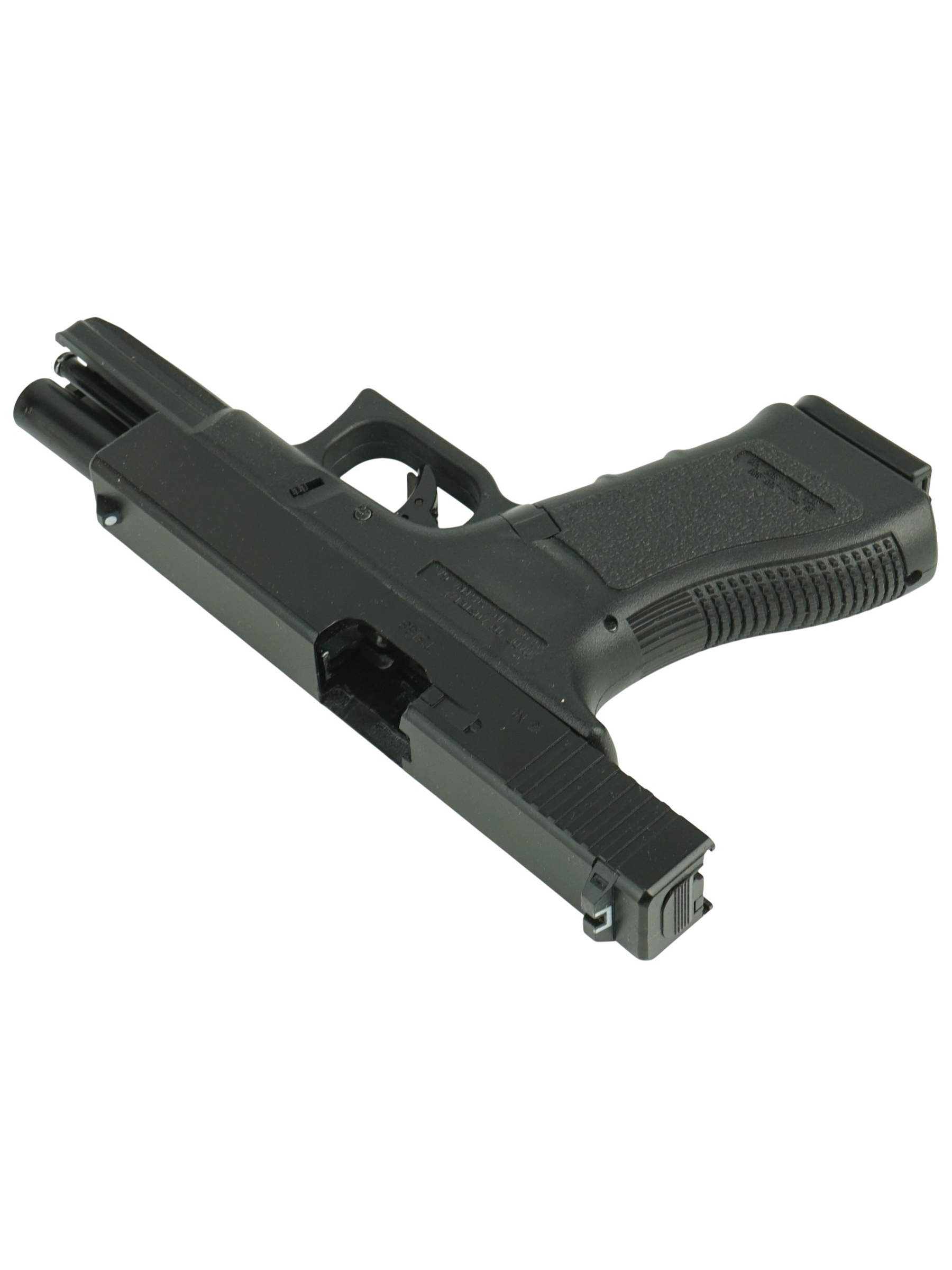 Корпус пистолета выполнен из прочного ABS-пластика, обеспечивающего надежность и долговечность. Органы управления выполнены из металла, придавая пистолету ощущение прочности и надежности. Вы сможете почувствовать каждое нажатие на затворную задержку и кнопку сброса магазина, воссоздавая реалистичный опыт использования боевого аналога.