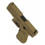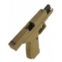 Корпус пистолета выполнен из прочного ABS-пластика, обеспечивающего надежность и долговечность. Органы управления выполнены из металла, придавая пистолету ощущение прочности и надежности. Вы сможете почувствовать каждое нажатие на затворную задержку и кнопку сброса магазина, воссоздавая реалистичный опыт использования боевого аналога.