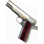 Страйкбольный пистолет WE Colt M1911A1, хром., коричн. накладки (WE-E006A) – это реалистичная реплика легендарного боевого оружия, копирующая прототип не только внешне, но и частично по конструктиву и процессу неполной разборки.
