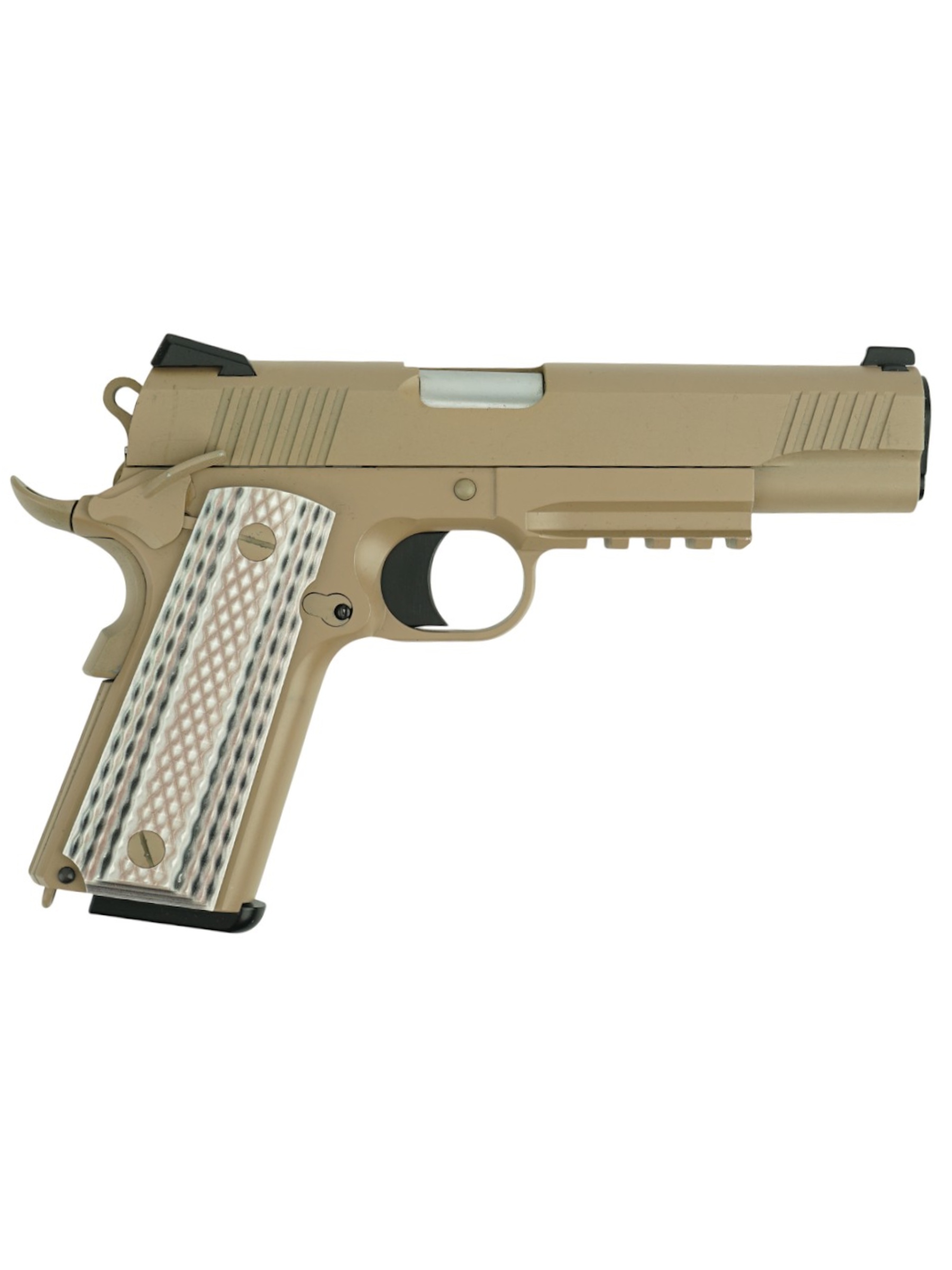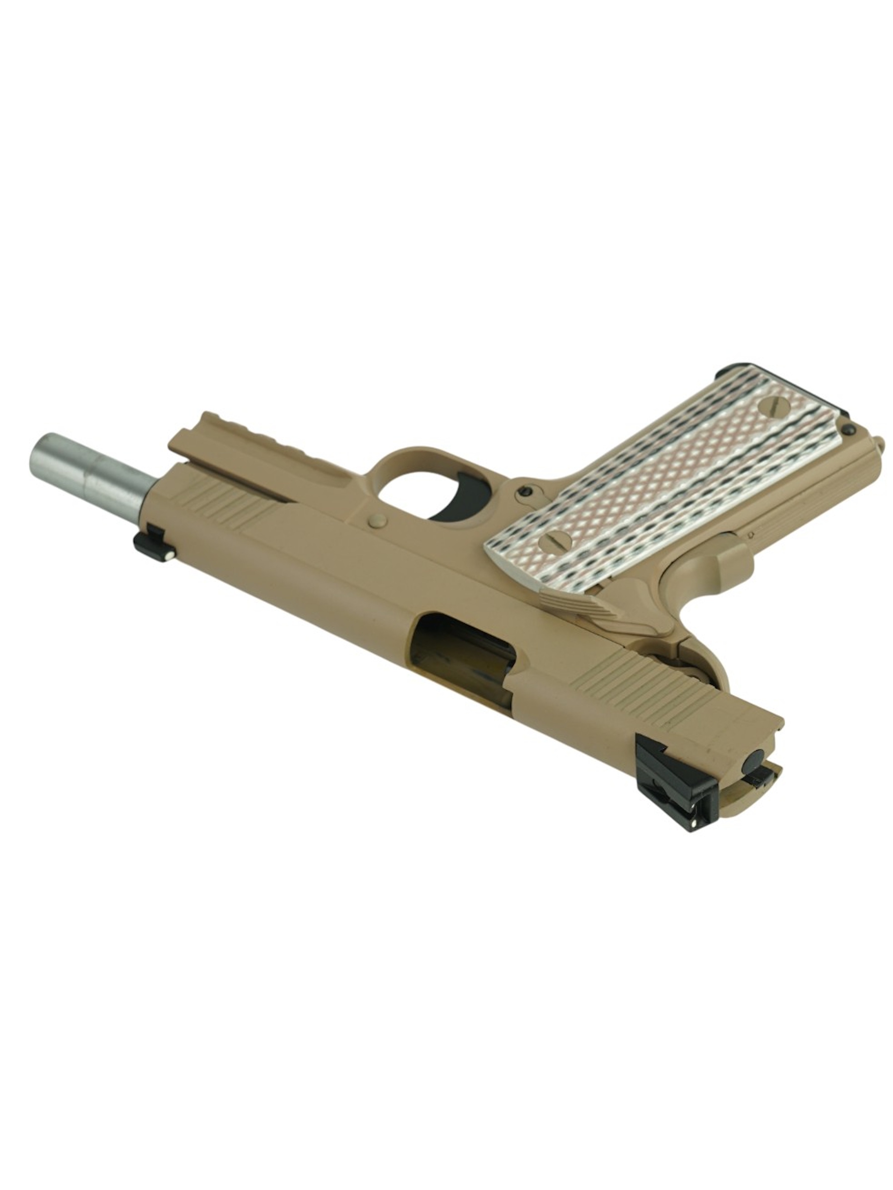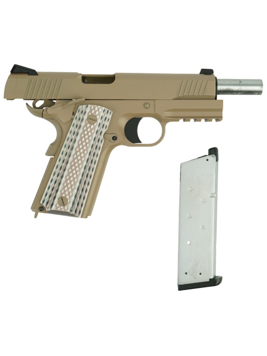 Описание страйкбольного пистолета WE Colt M45A1 Tan: